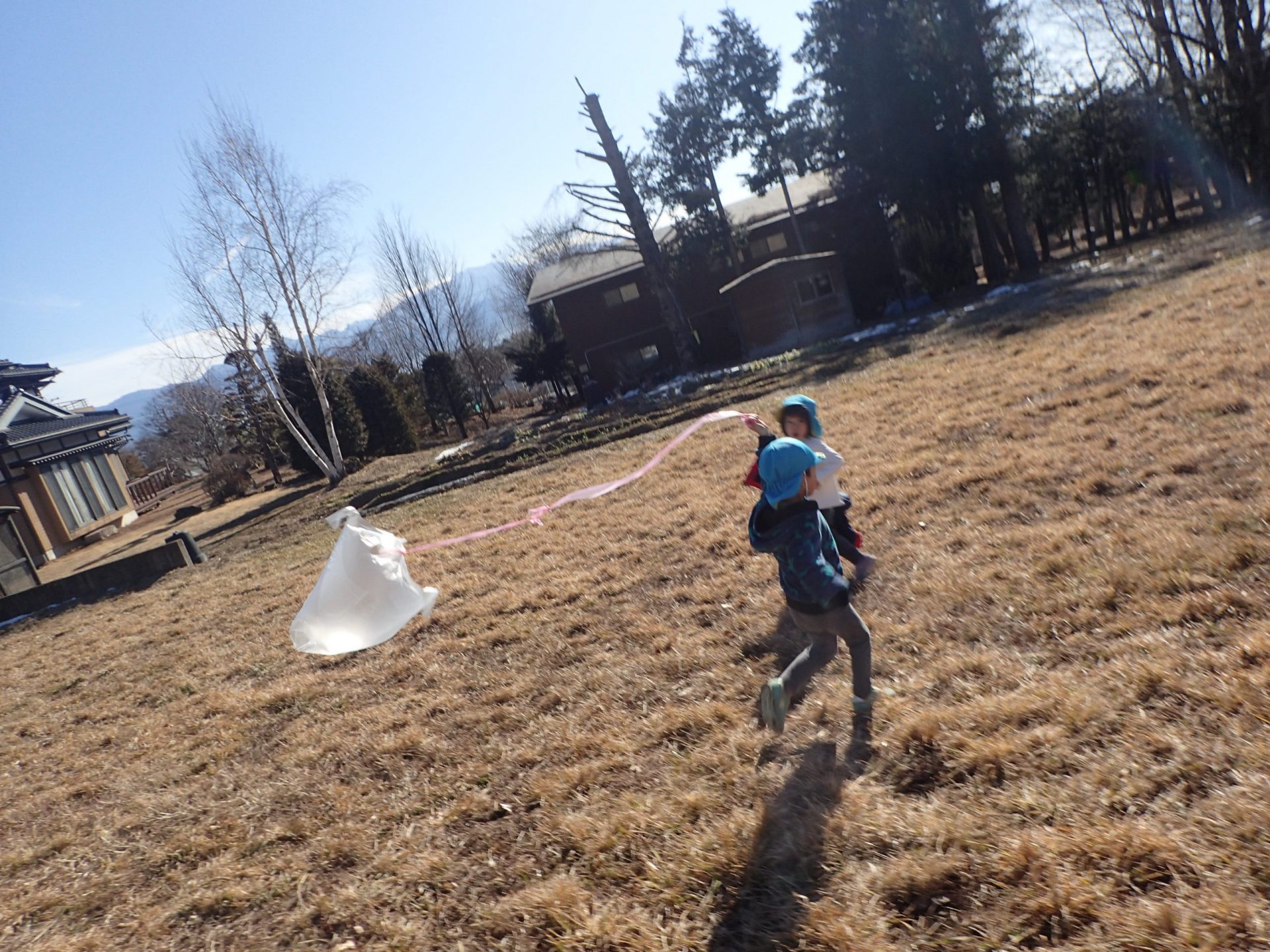 すごい!上手にとれたみたい!さあ、今度こそ!凧あげに挑戦だ