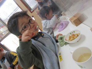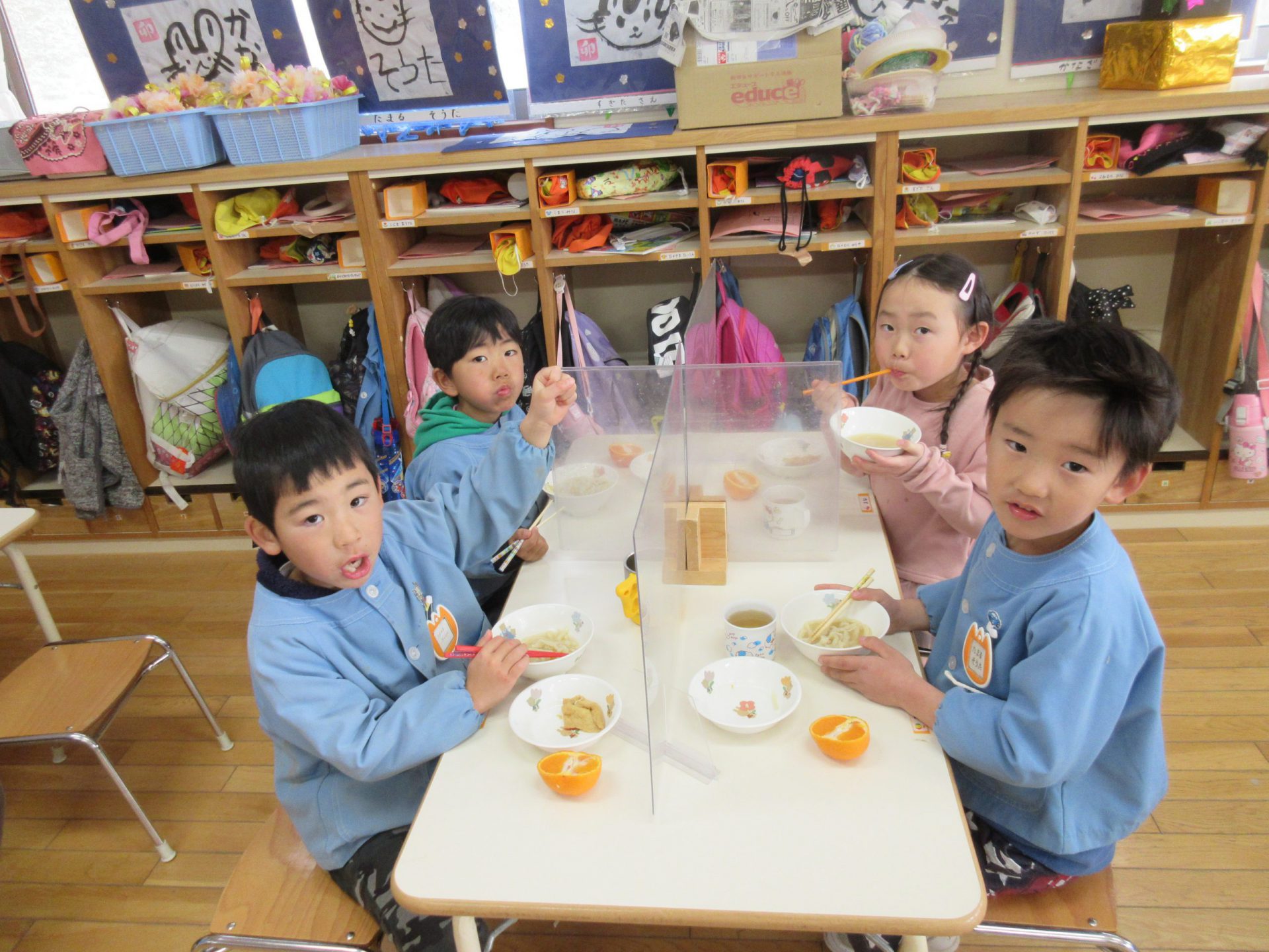「おいしいよ!見てて」と、うどんを「すっ」とすするのを見せてくれました