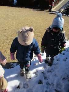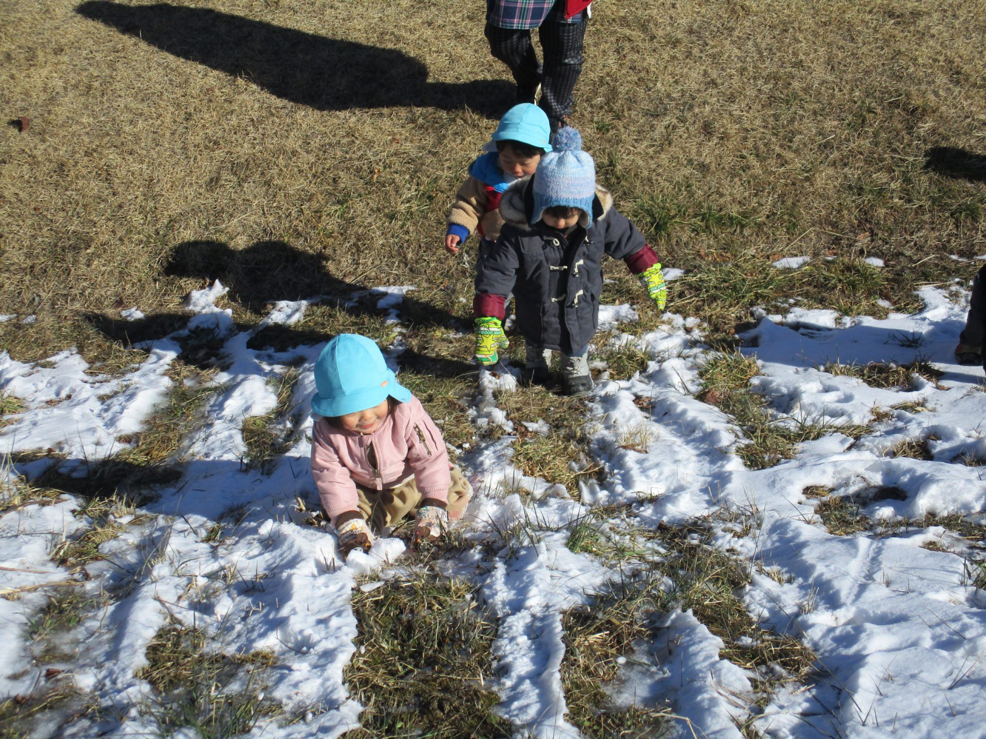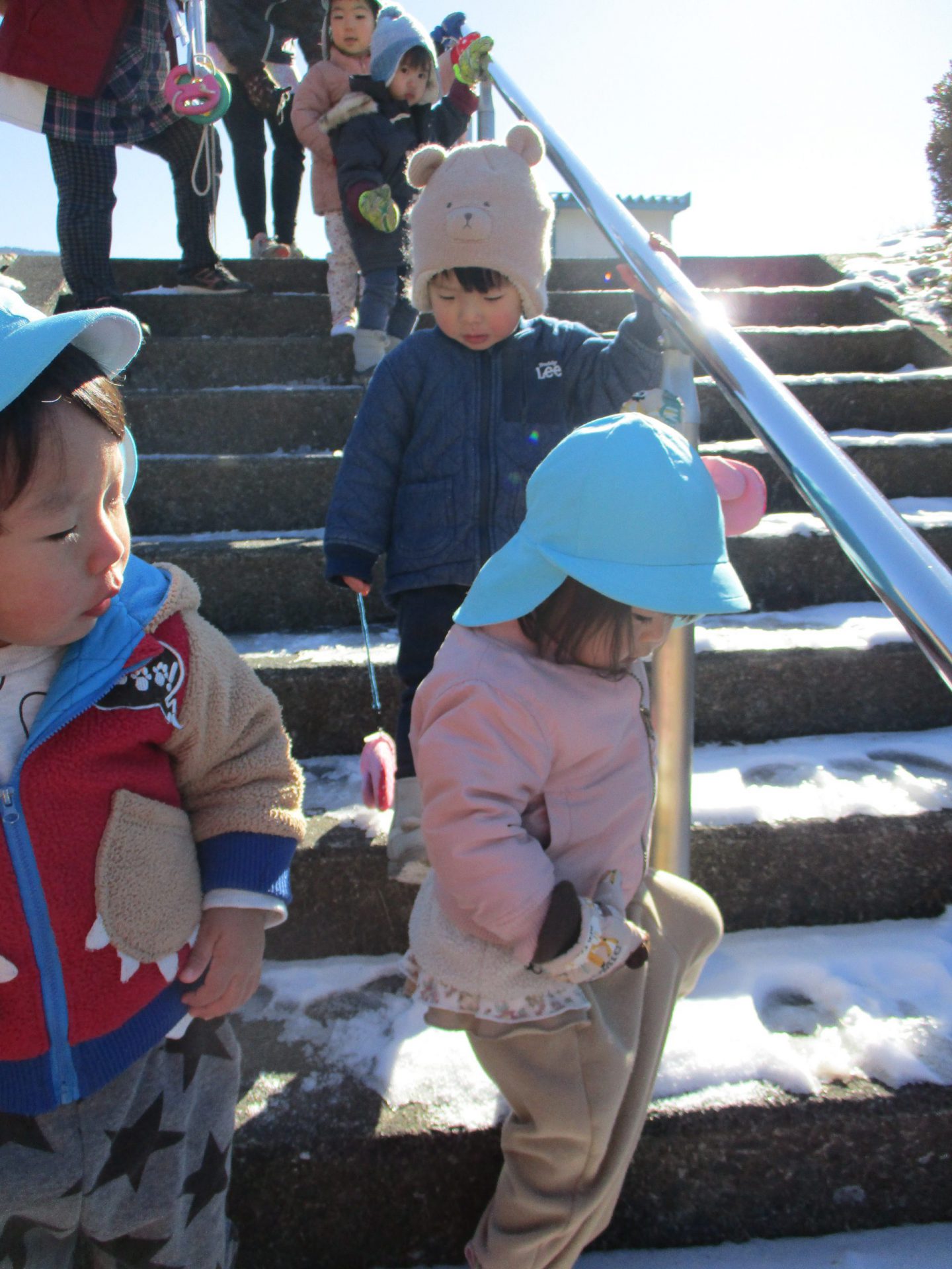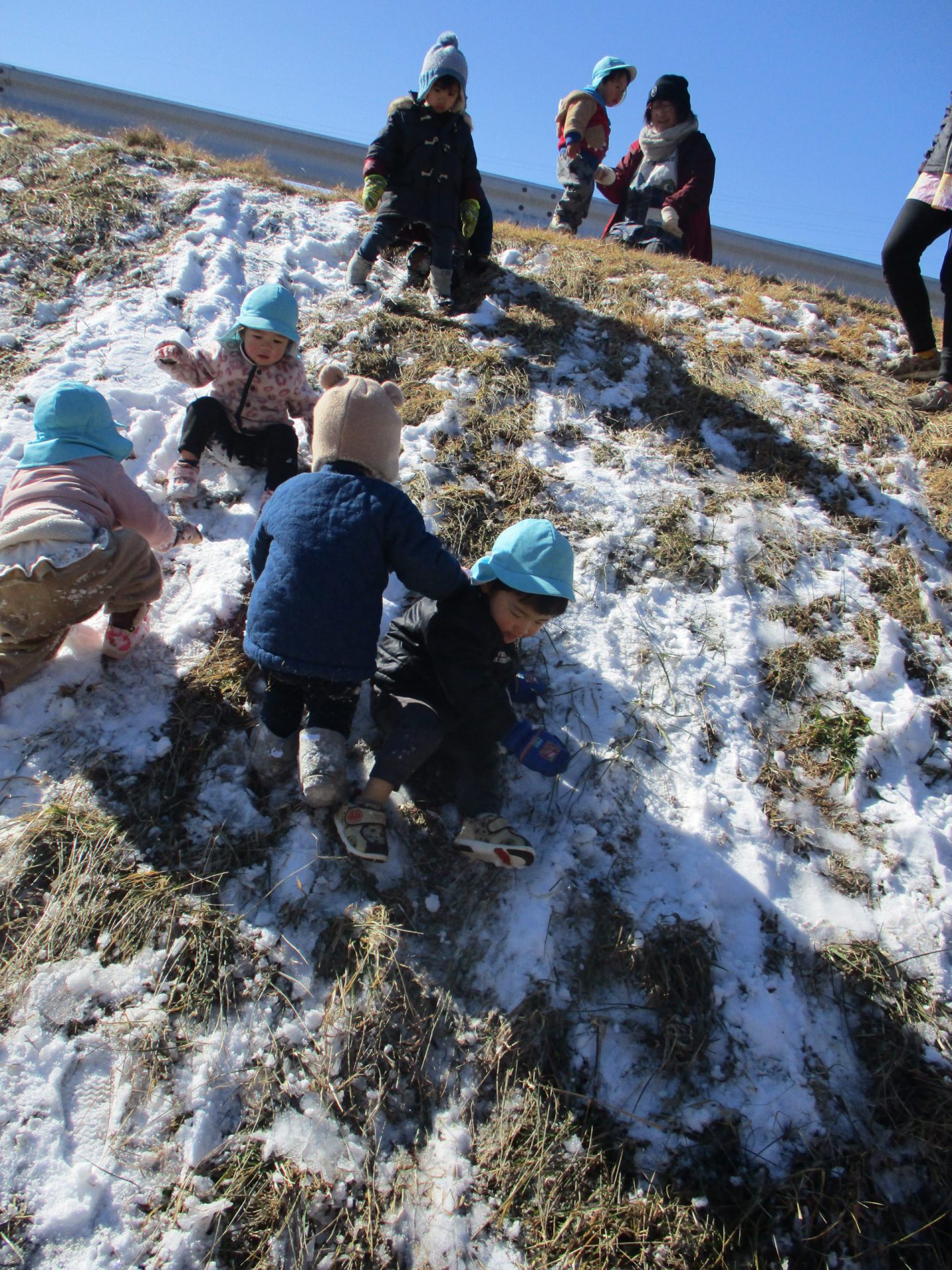 降りる時は雪の上を滑って降り、滑り台みたいでたのしー!滑っては登ってを何度もなんども繰り返す子ども達でした♪
