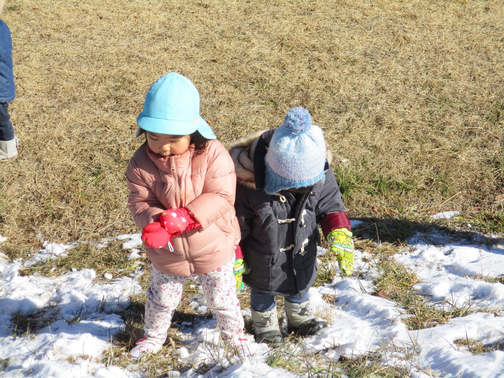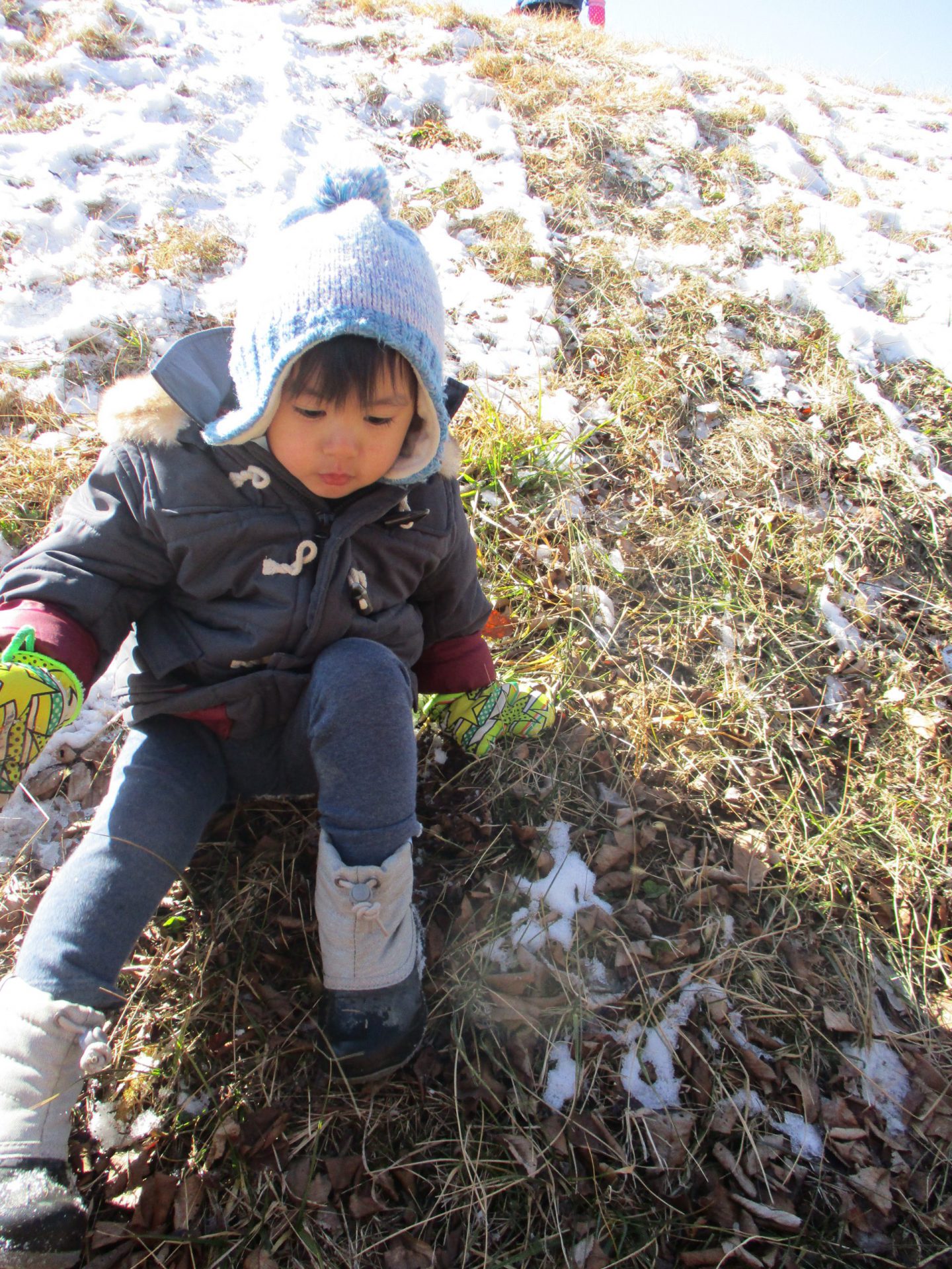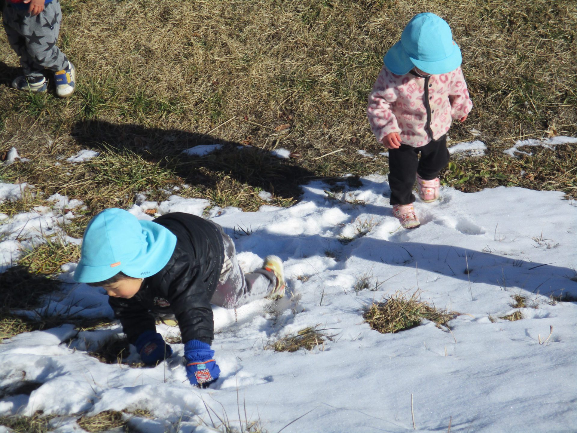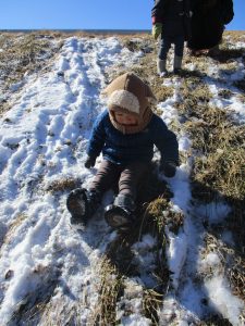 降りる時は雪の上を滑って降り、滑り台みたいでたのしー!滑っては登ってを何度もなんども繰り返す子ども達でした♪