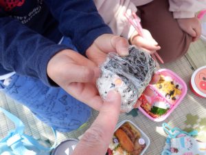 「せんせい、きょうのおにぎりね、“おはな”がはいっているんだよ(^^)」本当だ!お家の方の粋な計らいに、子どもも先生もにっこりです。