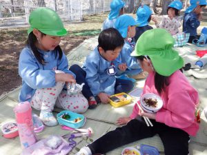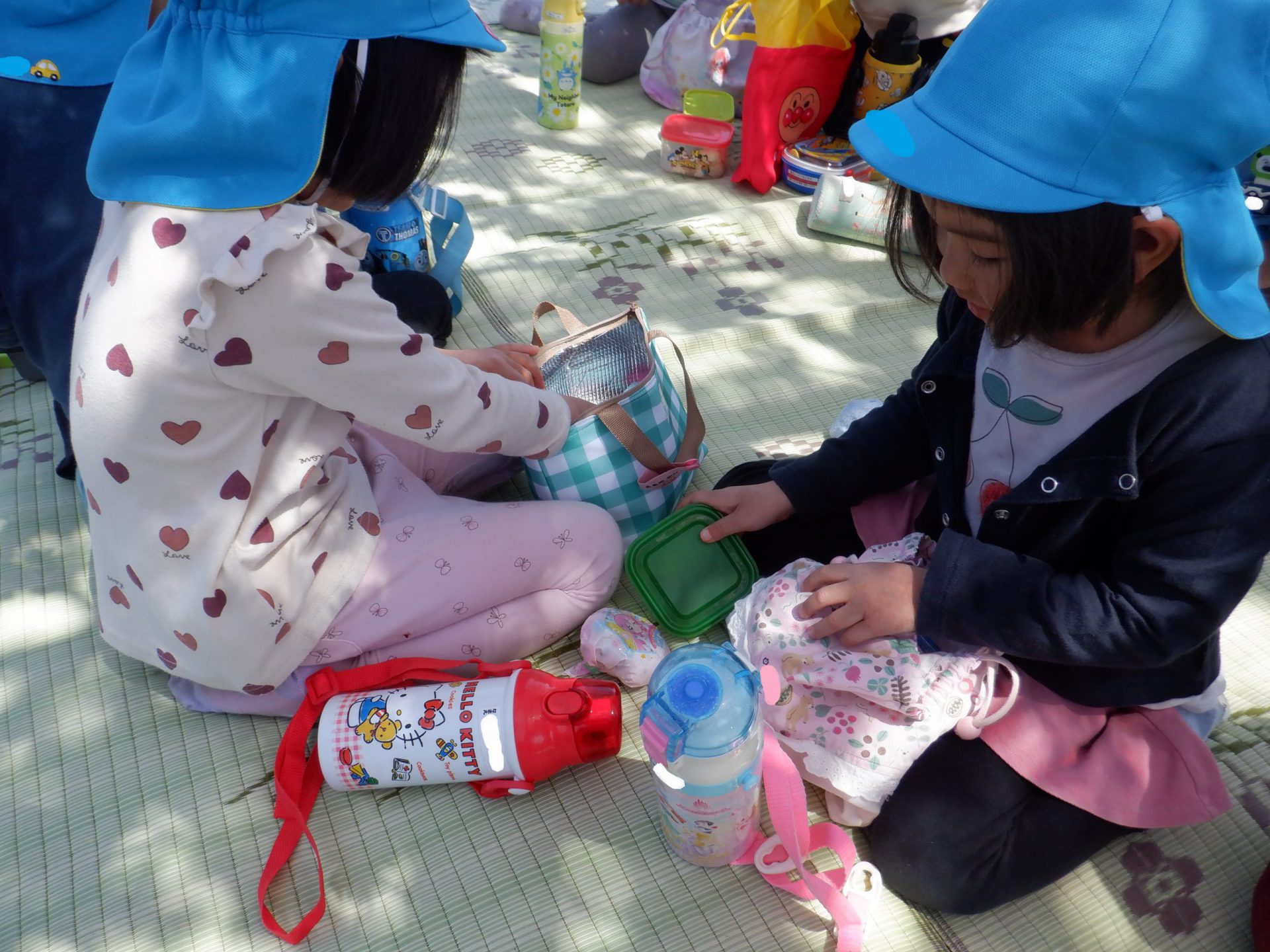 「はやく、たべたいよ~」今日はお家の方が作って下さったお弁当の日でした。「いただきます!」