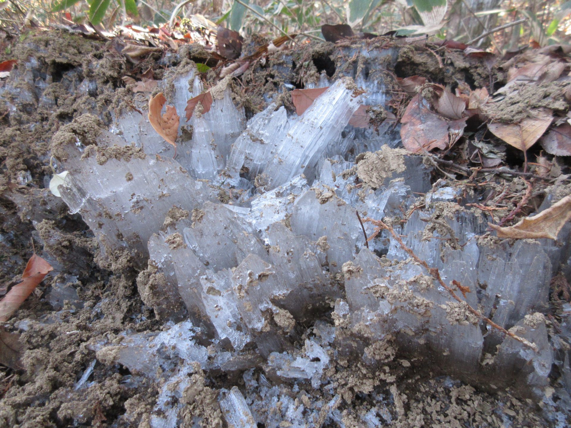 手押し車を使って霜柱をたくさん集めて