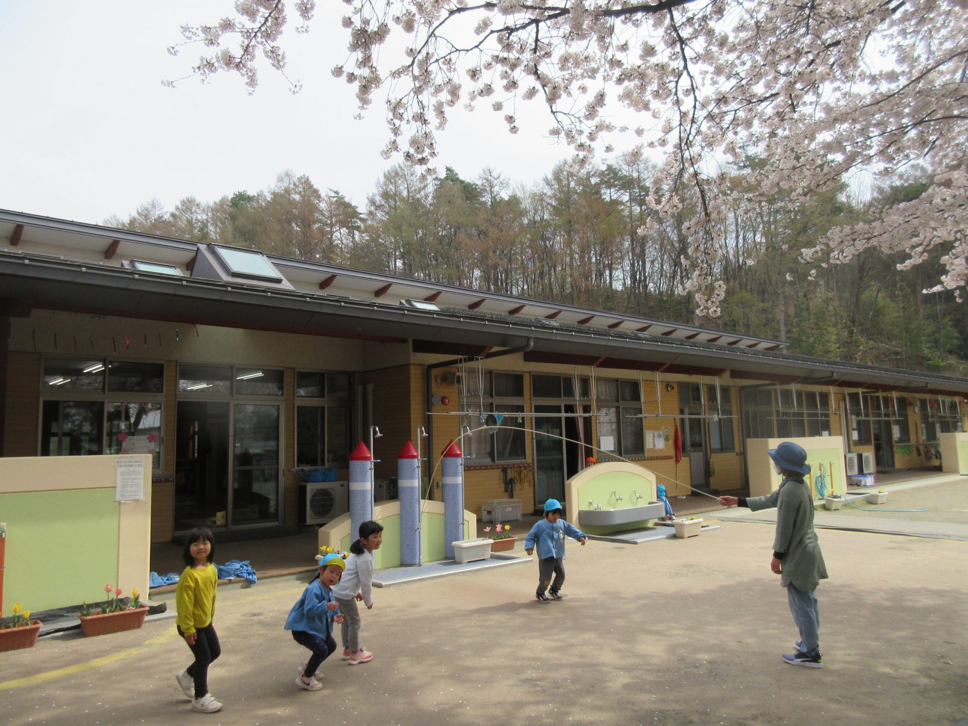 大縄跳びも大人気。「何回跳べる?」 すっごい、いっぱいいっぱい跳べるよ~