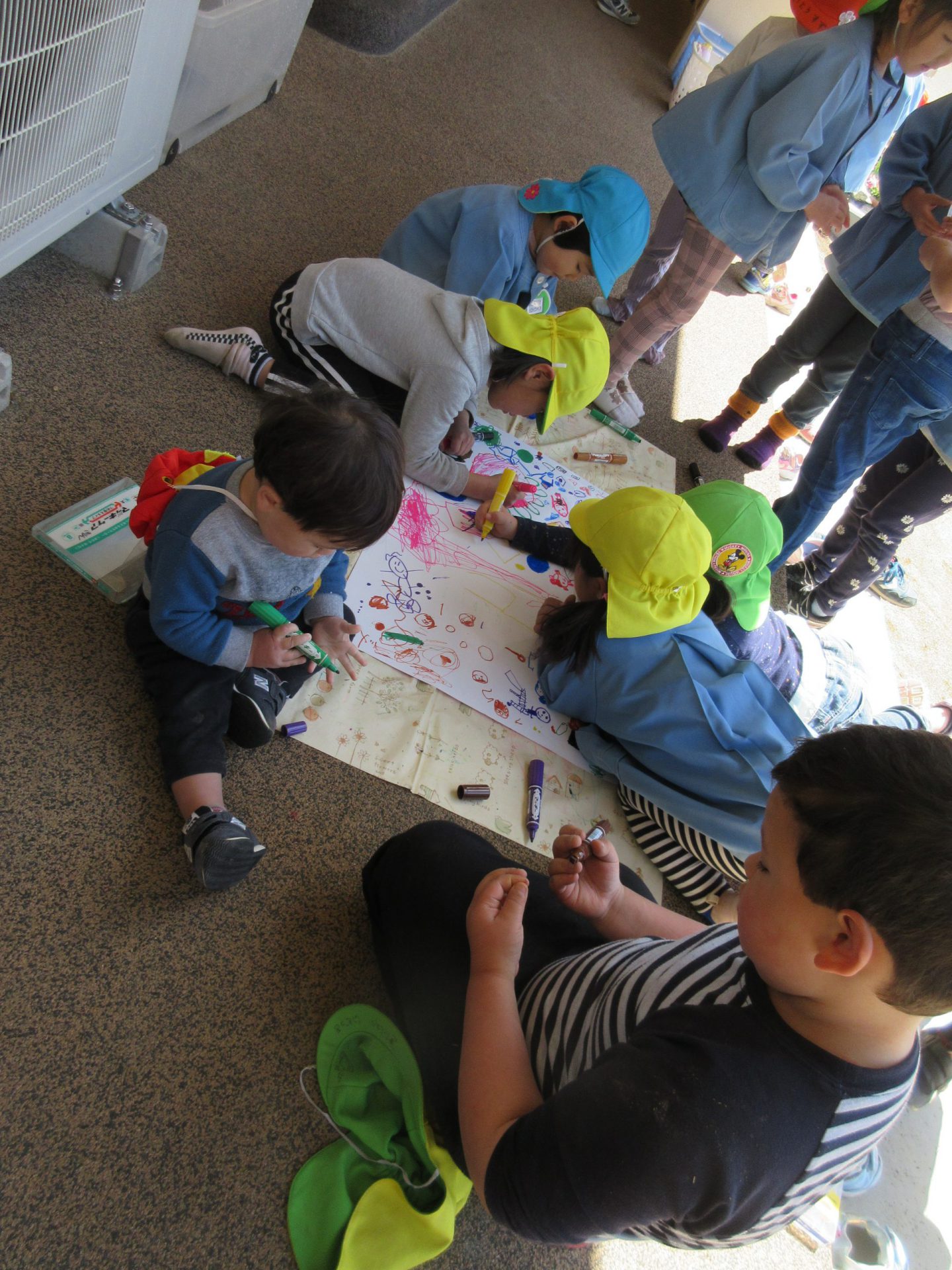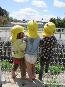 泣いていた年少さんも思わず「ぼくもやる!」と保育士の背中から降りて遊びだします