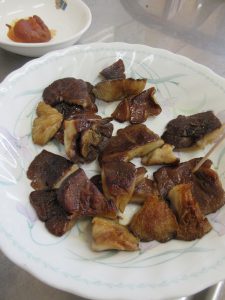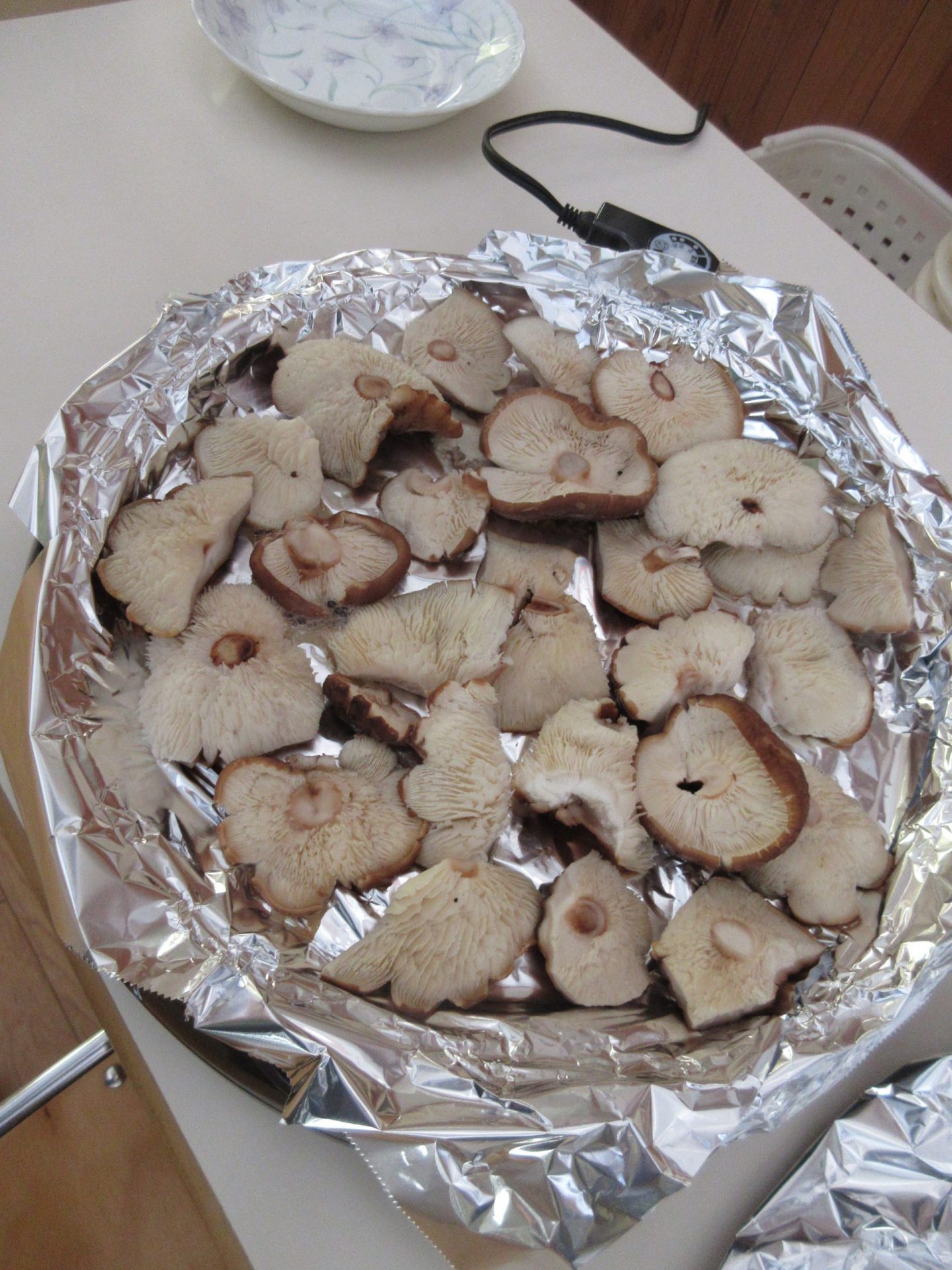 本当は洗わずに焼いた方が香りがよいといいますが、虫がおいしい椎茸を先に味わっていたので、塩水に漬けて虫退治をしてから、ホットプレートで焼きました!廊下にいい匂いが漂ってきます