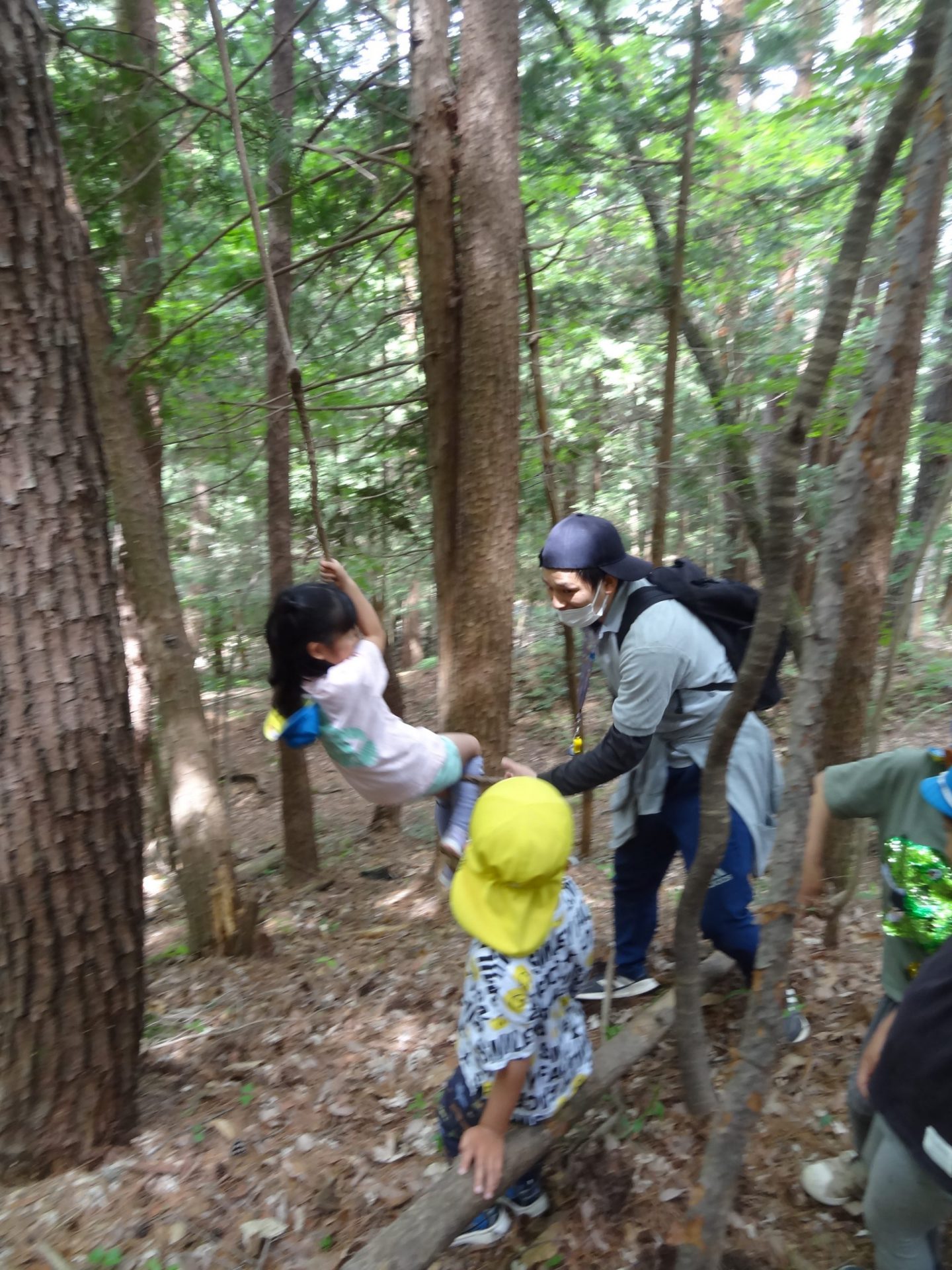 「あー怖かった!でもできたんだよ!!楽しかった!!」自然のターザンロープも大人気でした。