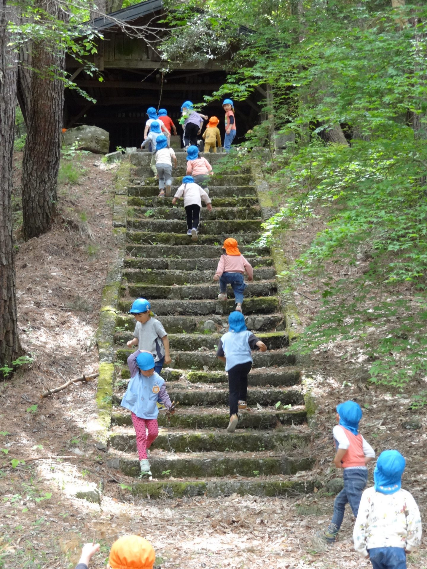 駆け下りるとまた階段を上って、走り下りて、また上って。何度も何度も楽しみました。みんな疲れ知らずです。