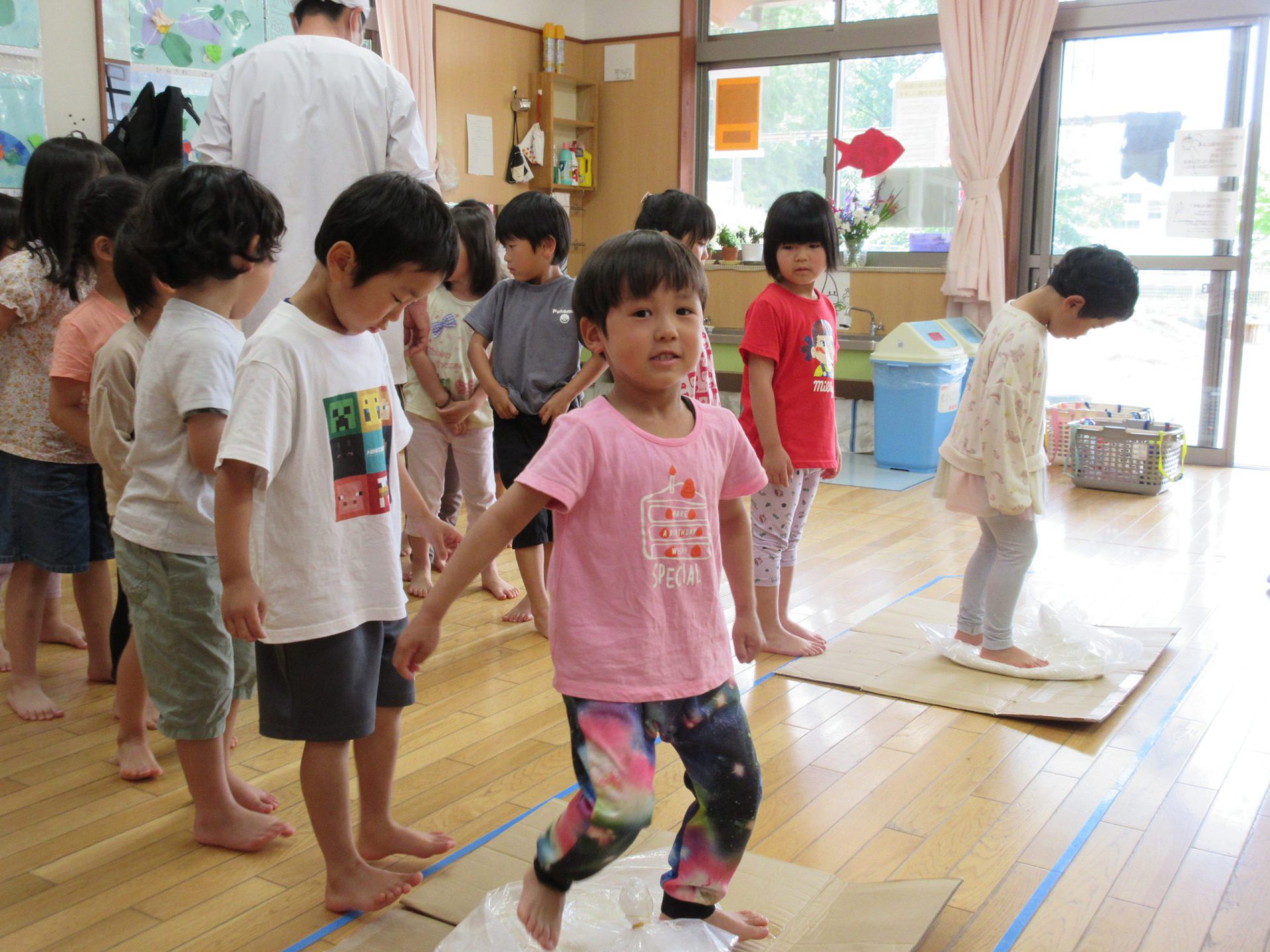 踏む前に触ってみたクラスも😊結構かたいね。先生の力すごいね。