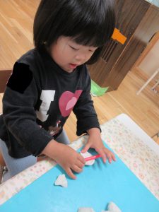 台風情報で心配な本日。本当ならおにぎりを持って遠足に行く予定でしたが、雨ではしかたがないですね。子ども達は遠足ごっこや室内遊びを楽しみました。年少さんの粘土遊びを覗いてみると…「うどん で~きた!!」今日もうどん作りでした。😊体験したことを早速遊びで再現。だからこそ、体験を大切にしたいですね。