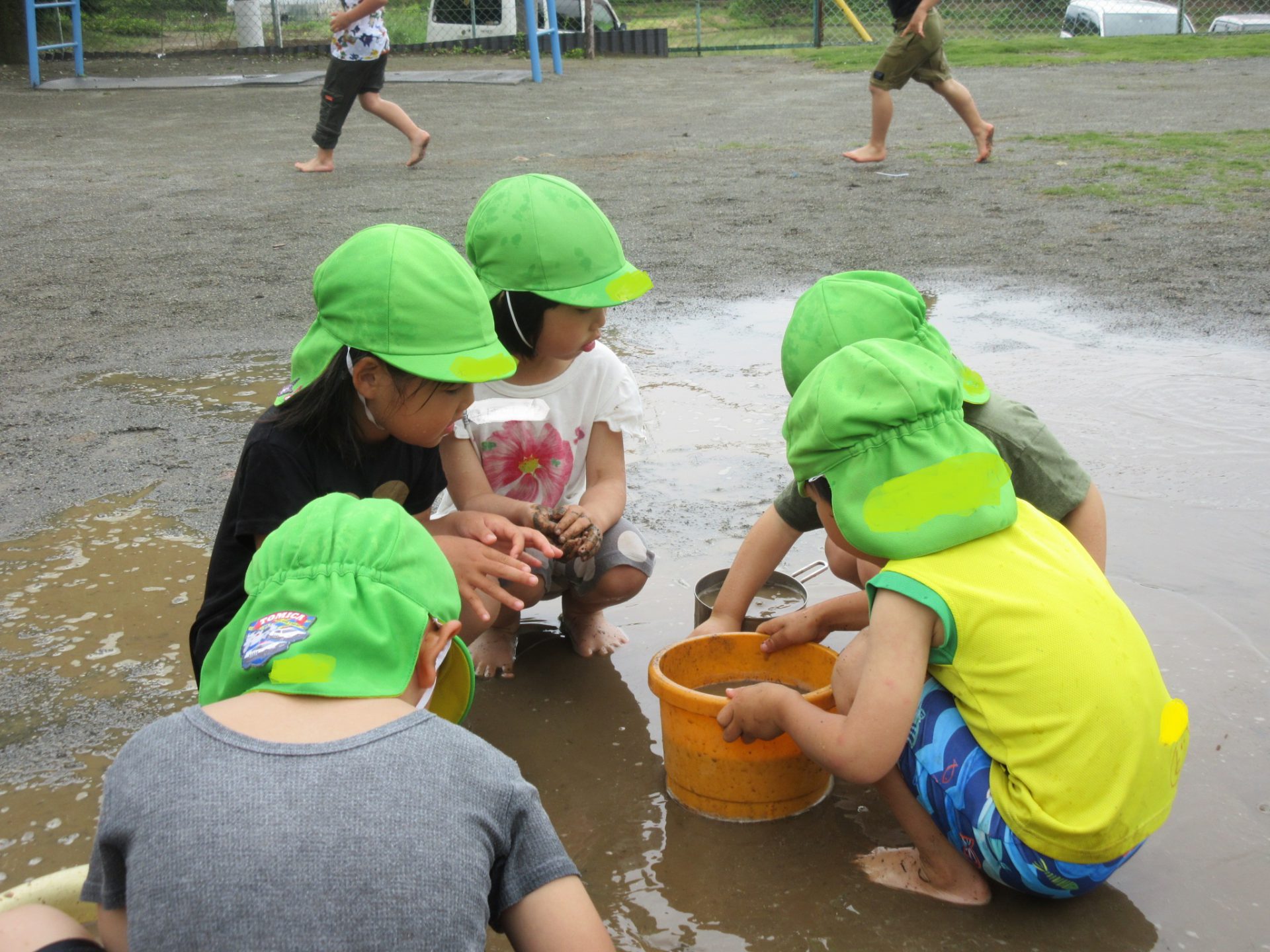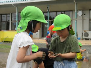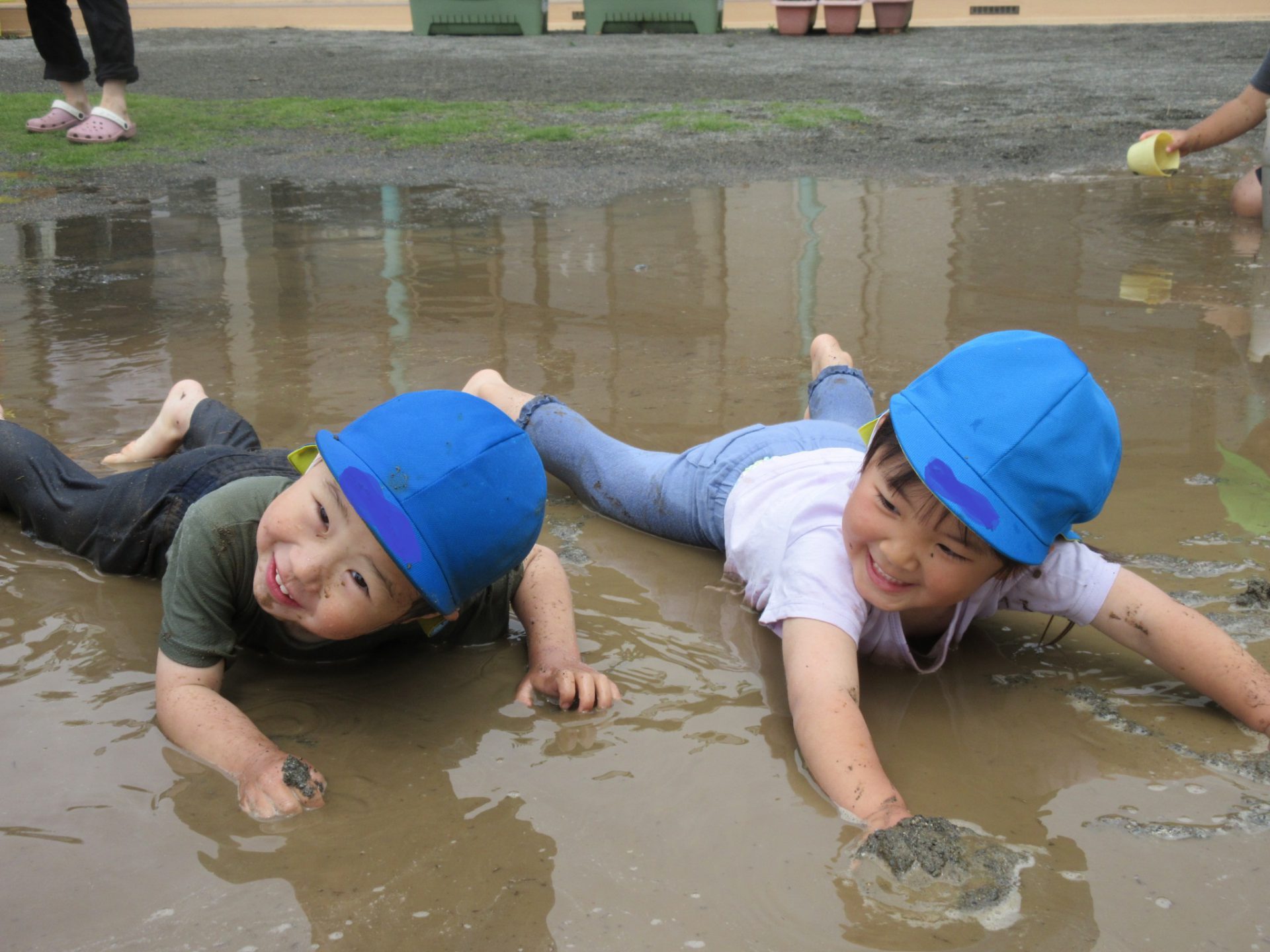 「泥んこ気持ちいいね~!」「「うん!気持ちい~い!」