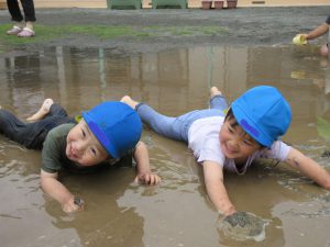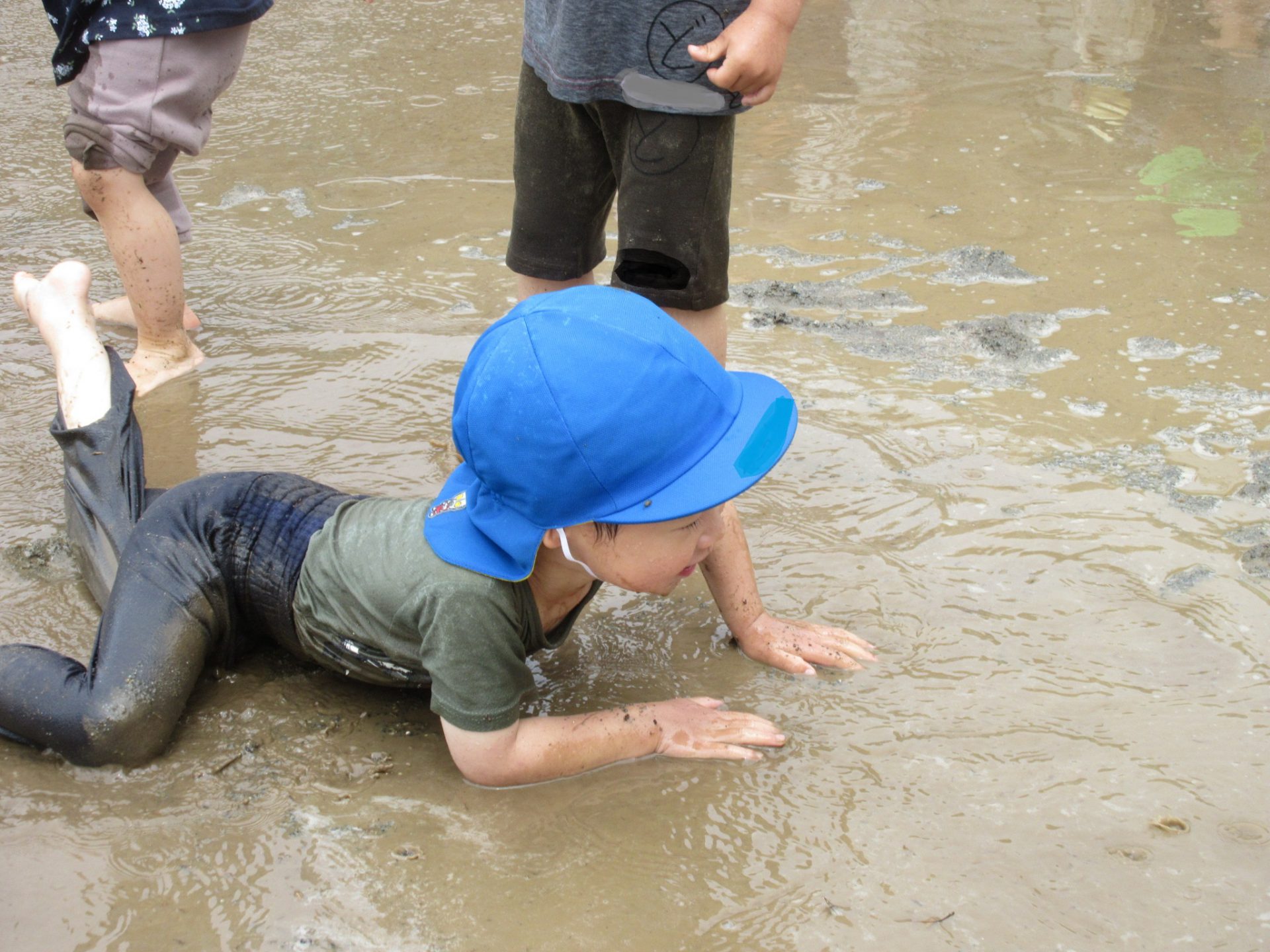 「俺は寝ちゃうぞー!」年長児は全身で泥んこ遊び!