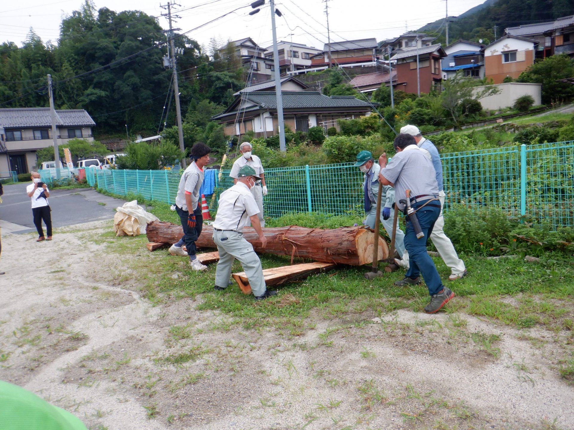 今回の皮むきに地域の林業に携わっている林業研究クラブ、森林組合、農林係と様々な方が協力してくれました。