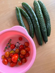 園の畑で子どもたちと育てた野菜が、沢山収穫出来ています!