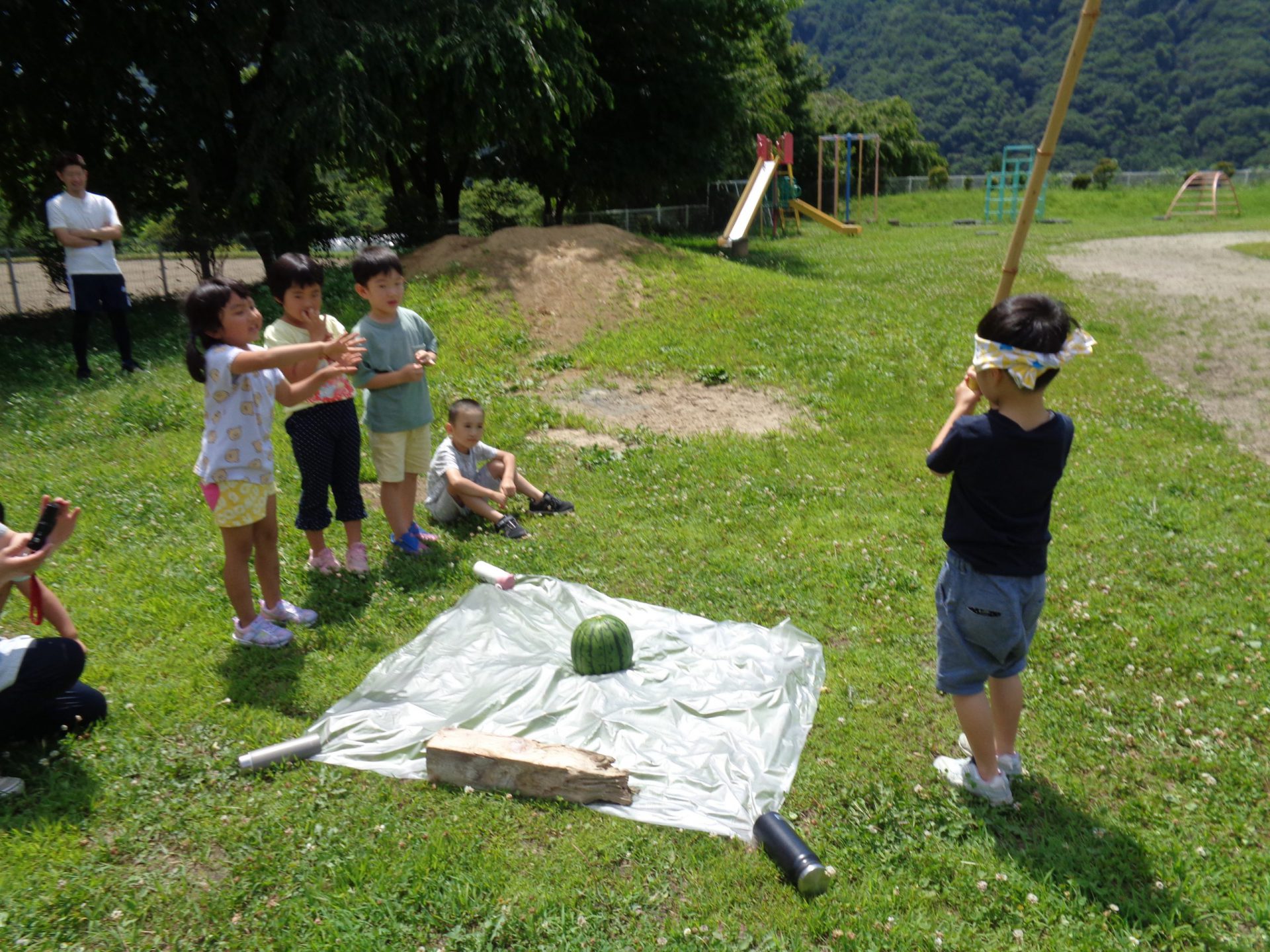 園庭でカレーを食べた後は、いよいよスイカ割り