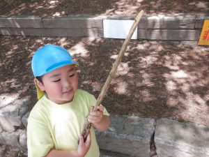 こんなに長い枝もあるよ!と見せてくれました。この枝が杖になるかな?剣になるかな?何も土手登りが全てではありませんね。林の楽しみ方はそれぞれ。