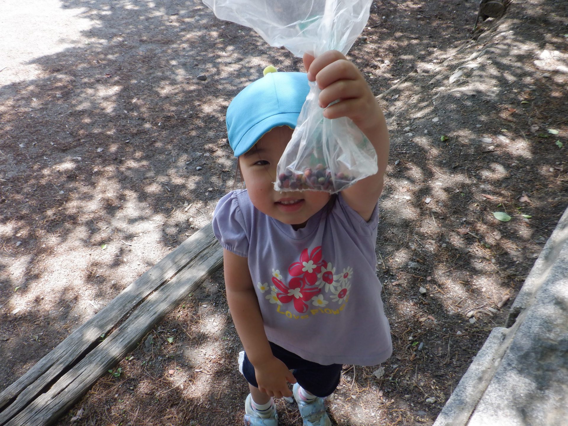 少し場所を移して、こちらは落ちていた木の実を採っていました。たくさん集めたね。