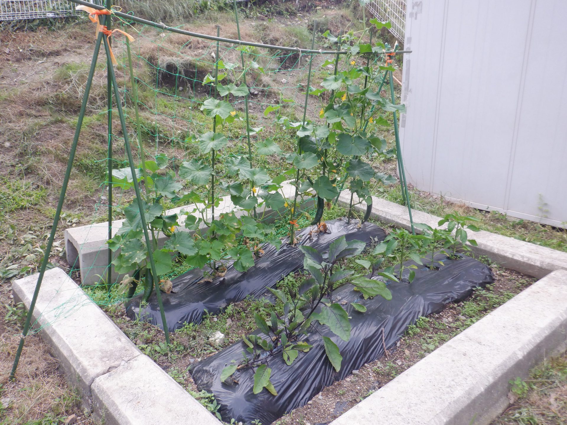 立派なナスとキュウリができ、収穫間近です!