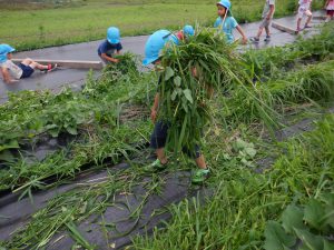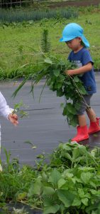 ご家庭で育てている機会が多いのか、野菜が苦手でも畑仕事は大好きな子ども達。暑い日が続くけど、大地の栄養を吸ってぐんぐん大きくなった野菜を食べ、皆も大きくなあれ!