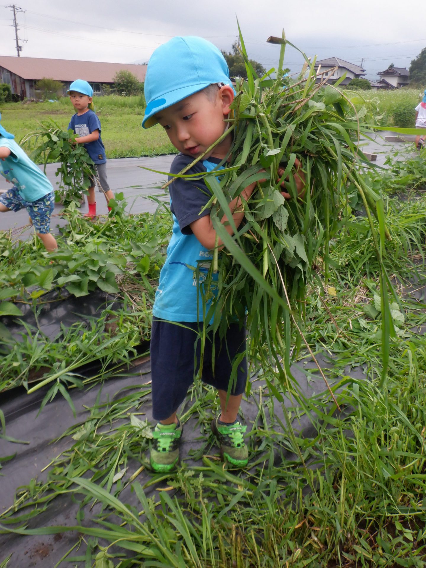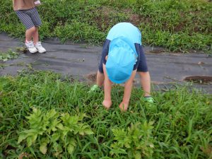 一心不乱に雑草を抜き取ります。お家でもやっているのでしょうか、保育士よりも様になっています。