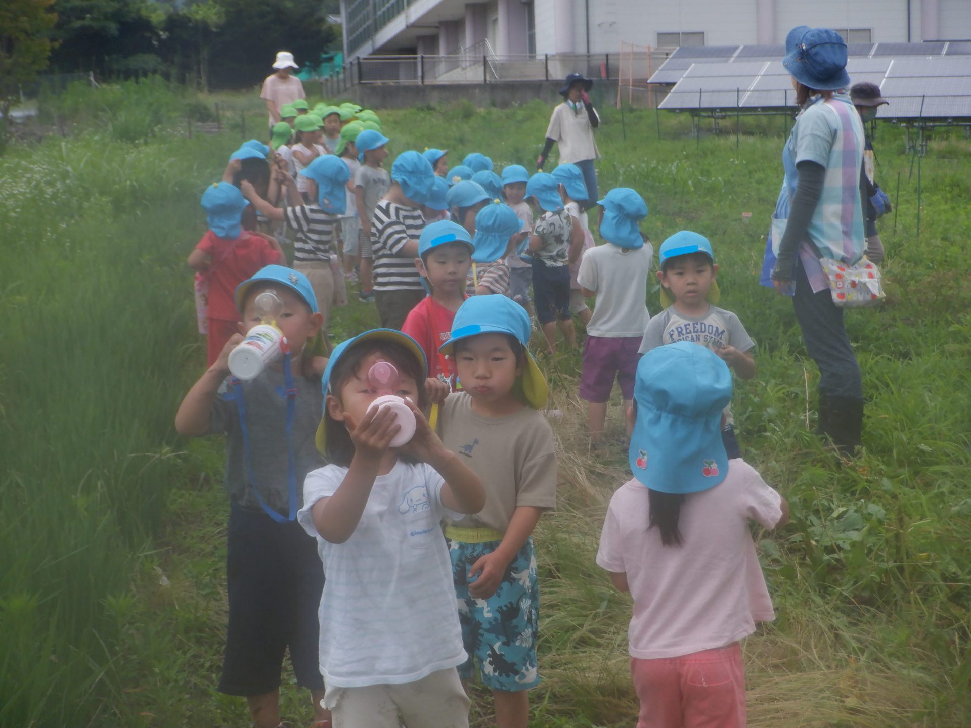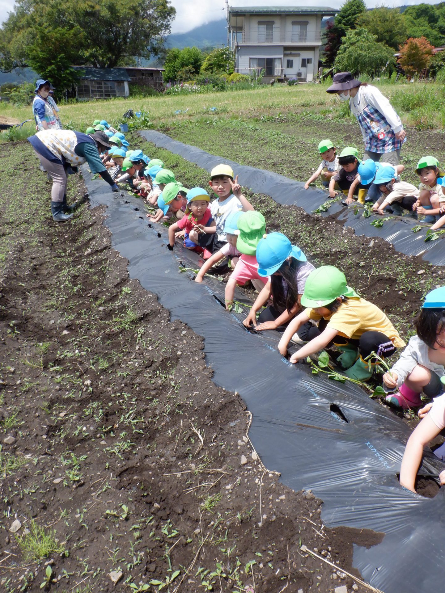 短い時間でしたが、暑い中を頑張ってくれました。おかげで、ジャガイモやサツマイモが見えるようになったよ!