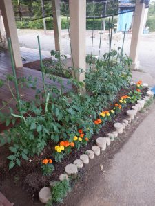 こちらはもうすぐトマトができあがります。収穫したトマトはピザパーティーにて使用予定です。楽しみだね!