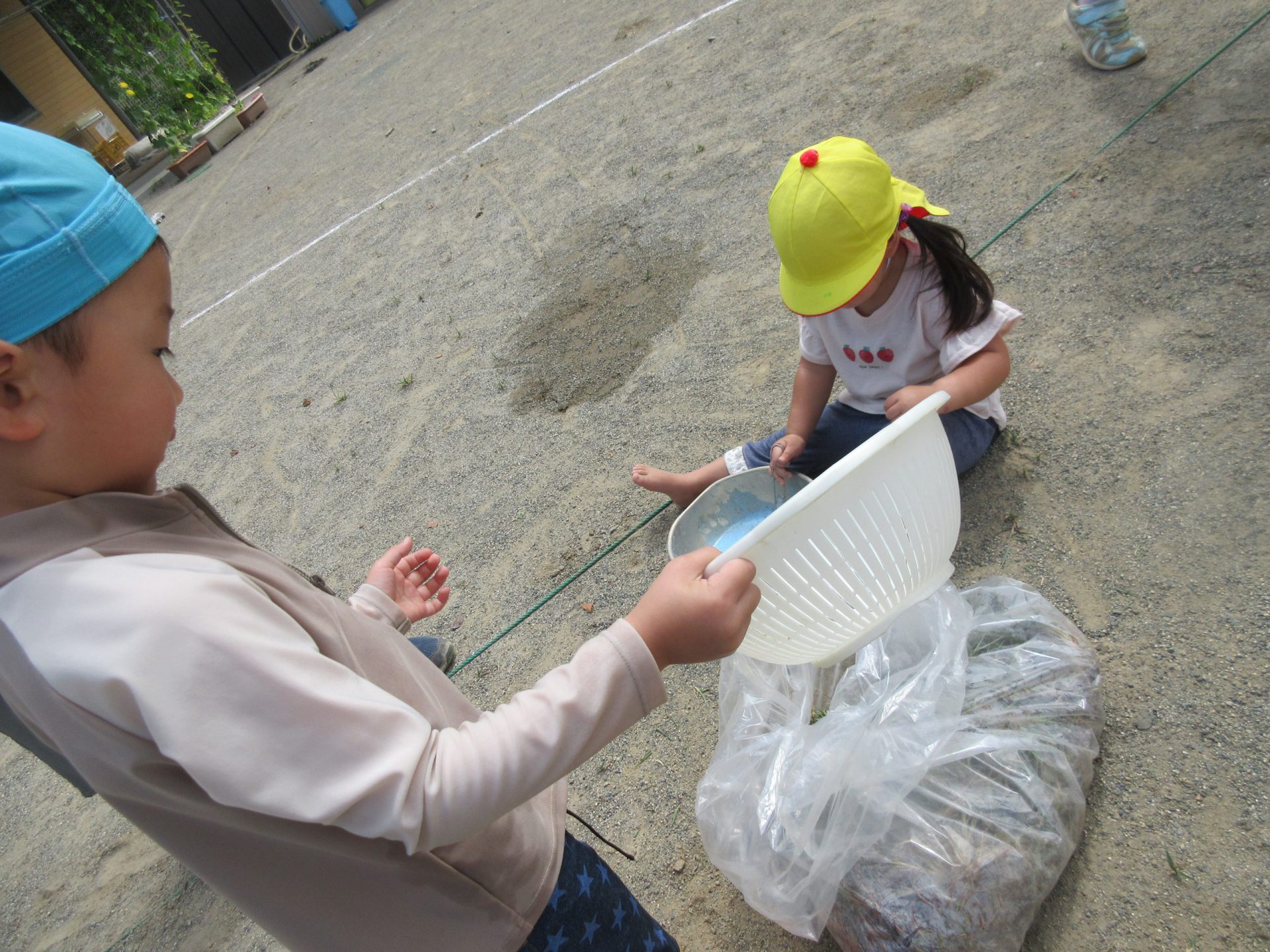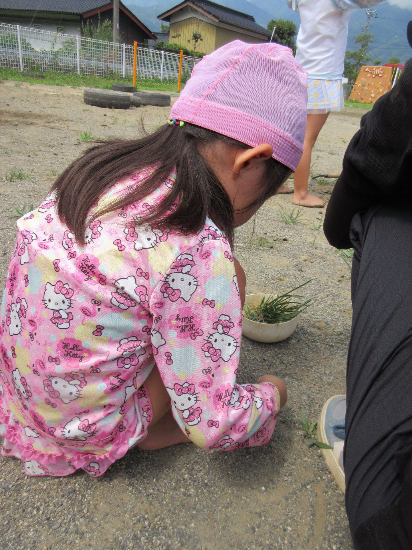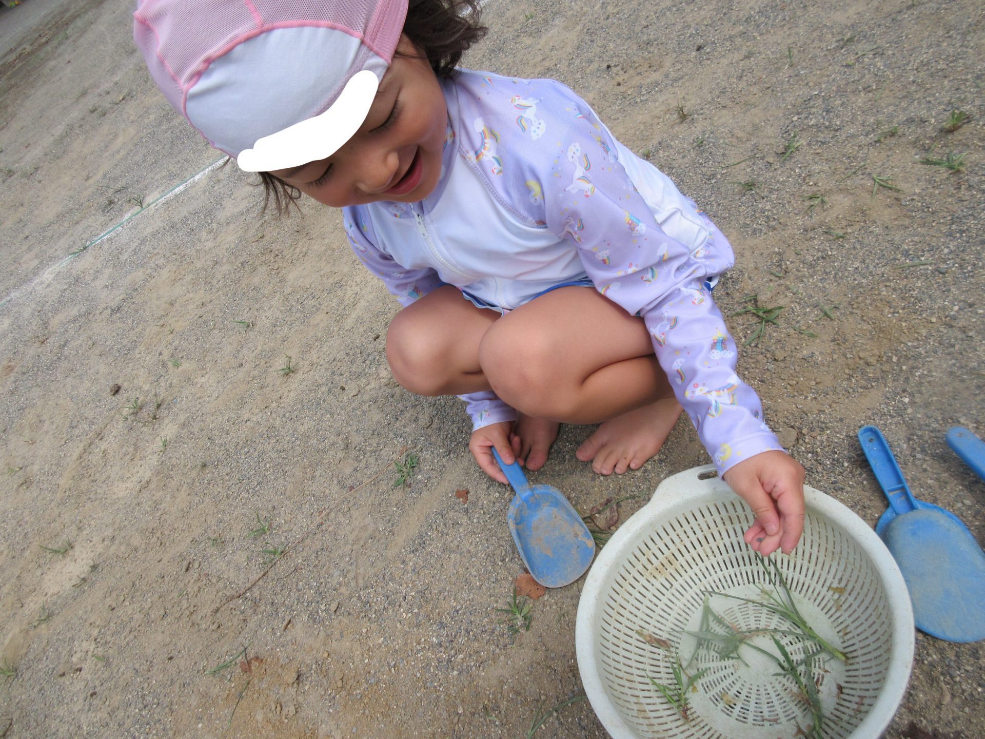 年中さんになると、たくさん工夫もできますね。目に見えて草が減ってきます。