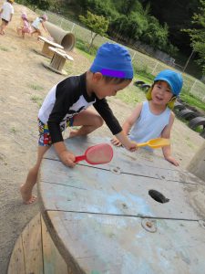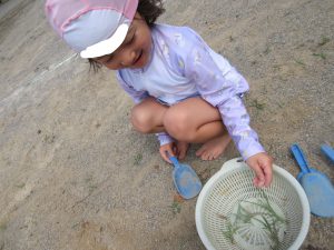 「いや~よくがんばったよ!」 「僕は草をきれいに洗っといたで!!」 雑草を洗う発想。子どもは本当におもしろいですね。 そして大人が草を袋に入れると集めていた2歳さんが「ありがとうございます」と。 なんだか心があたたかくなる草取りでした。きれいになったトラックでかけっこしようね!!