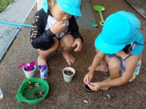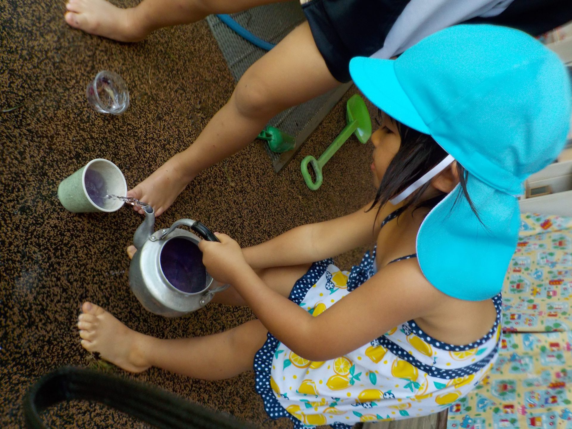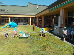 朝の会でそれぞれ何して遊ぶのか聞いていると「そうめん流しやる!!」と思い付いた友だち。その案が面白そうと「私もやる!」と乗る友達。どうやって遊ぶのか楽しみです。