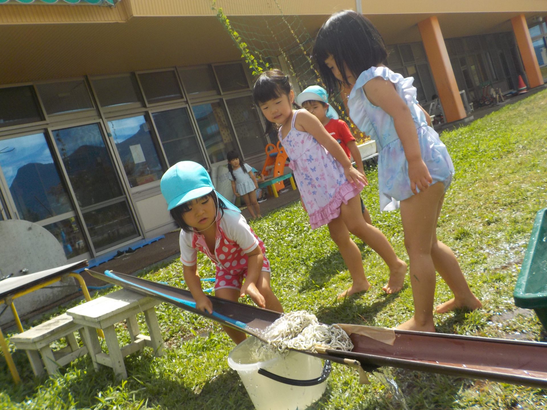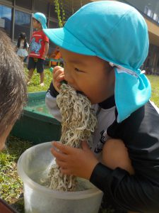 流したり、食べたり、麺つゆにつけたり・・・それぞれに満喫したあそびになりました。