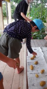 年長さんも次々にジャガイモ洗いに取り掛かります。もう水が真っ黒で、さすが仕事熱心です。