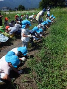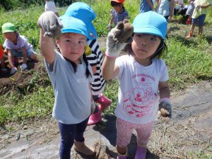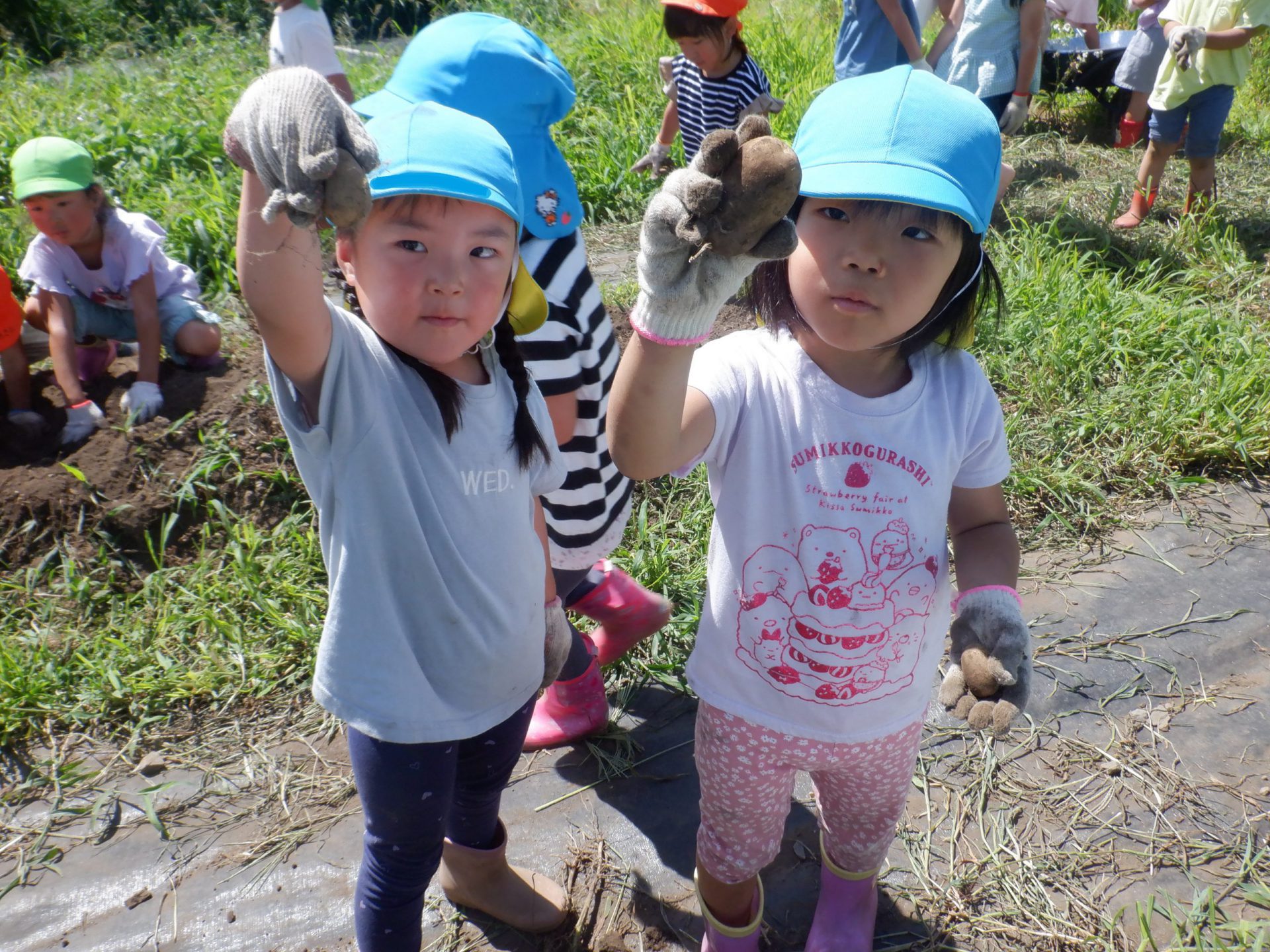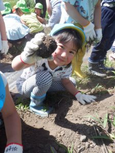 幼児さん皆が揃っての収穫です!さてさて、何が出てくるのかな?