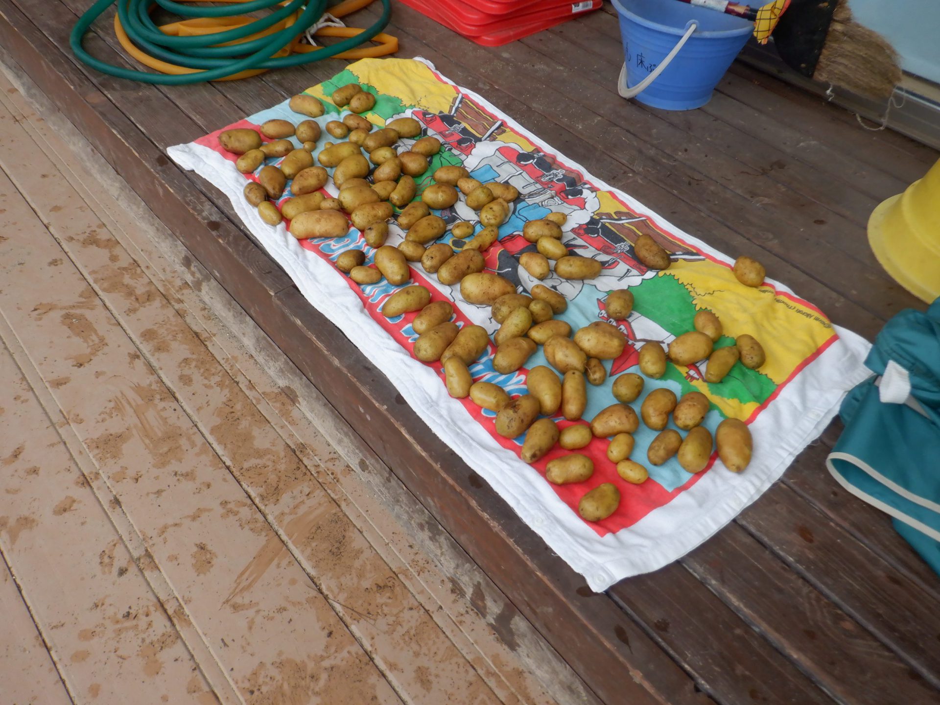 洗ったイモを丁寧に並べてくれています。ありがとうね。