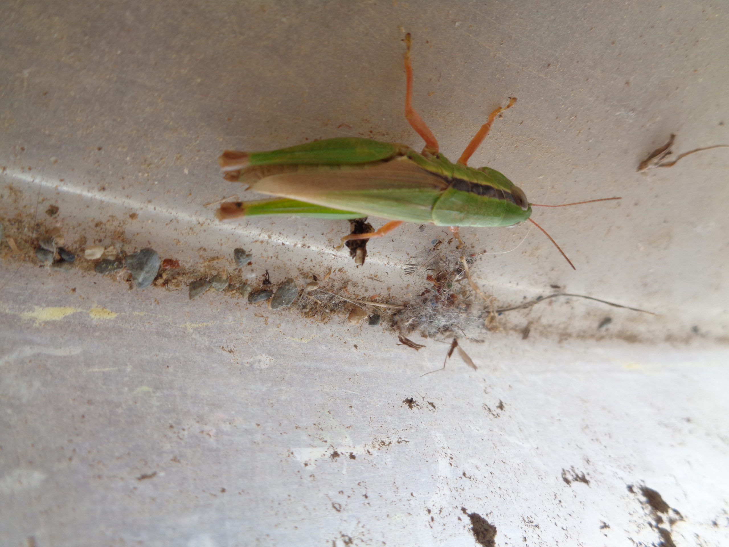 そーっと近づくとはねて逃げてしまう虫におっかなびっくり!!悪縁苦闘しながらなんとか捕まえることに成功しました。その虫を虫かごに入れて観察することにしました。