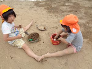 運動会の練習の合間に、外遊びを楽しんでいます。今年は雨がなかなか降らないので砂で真っ白になりながら楽し