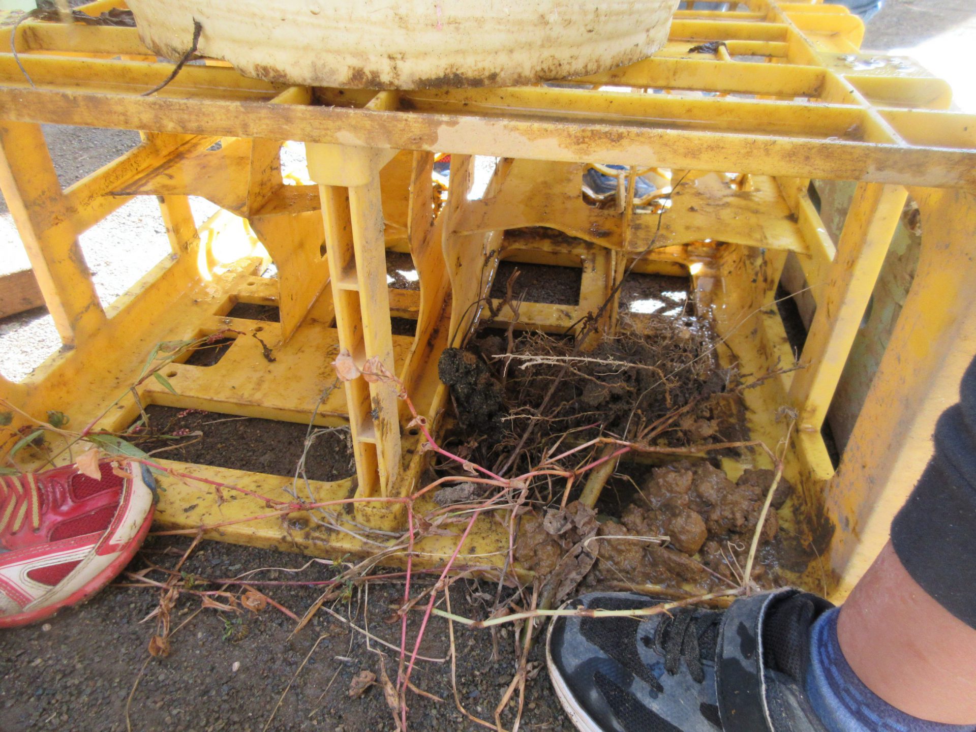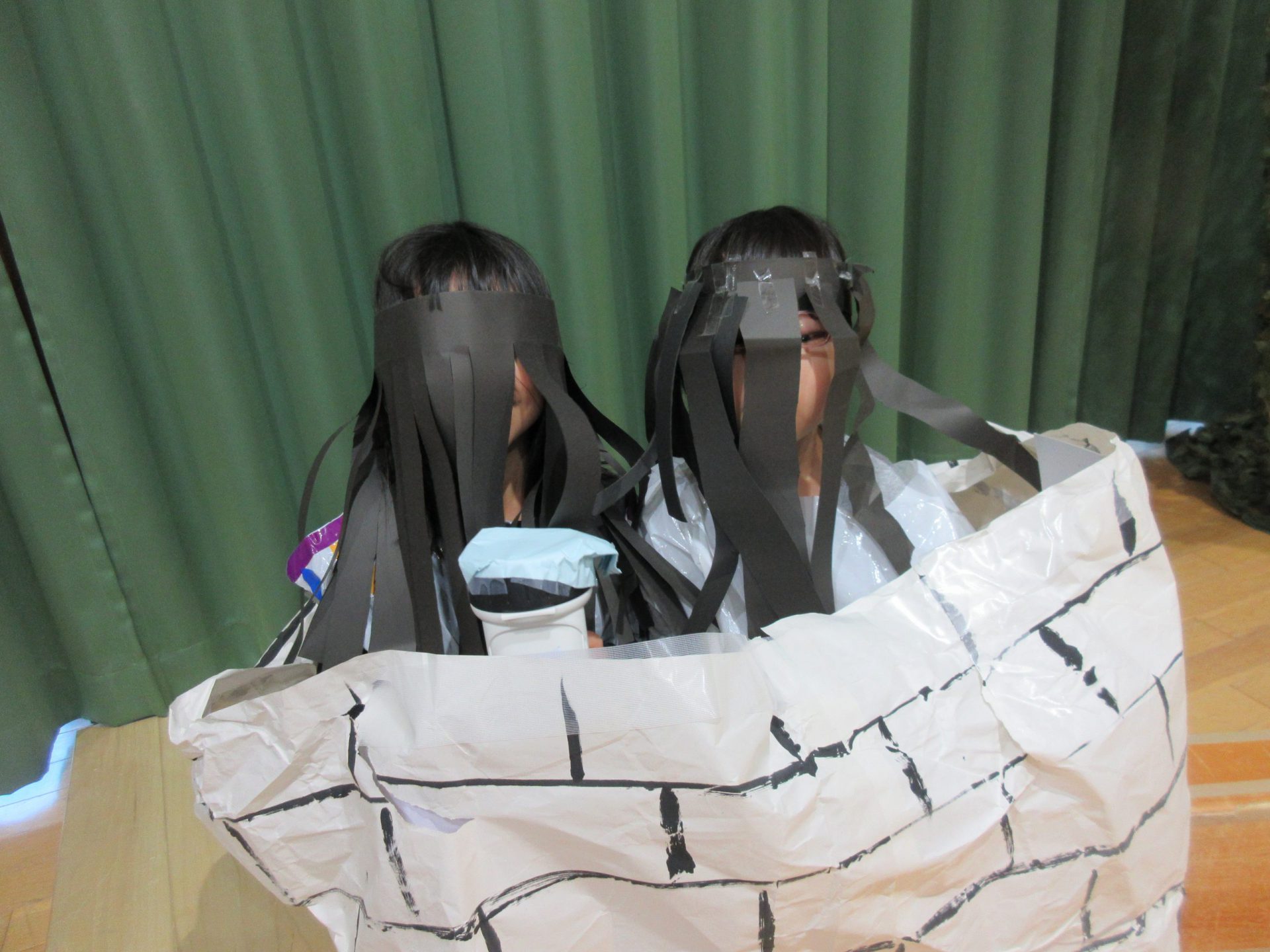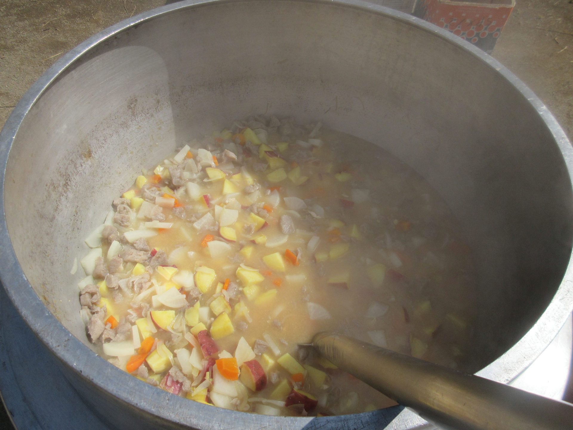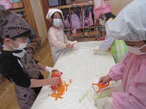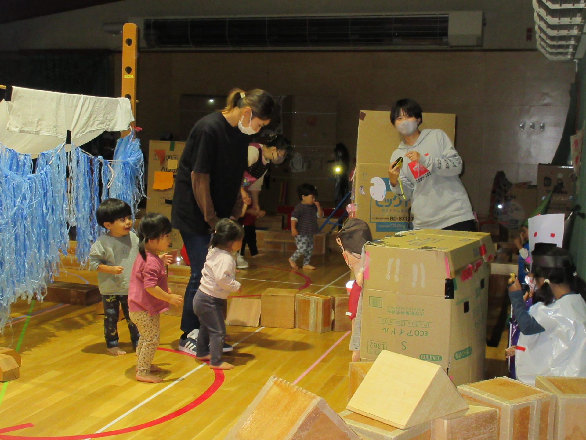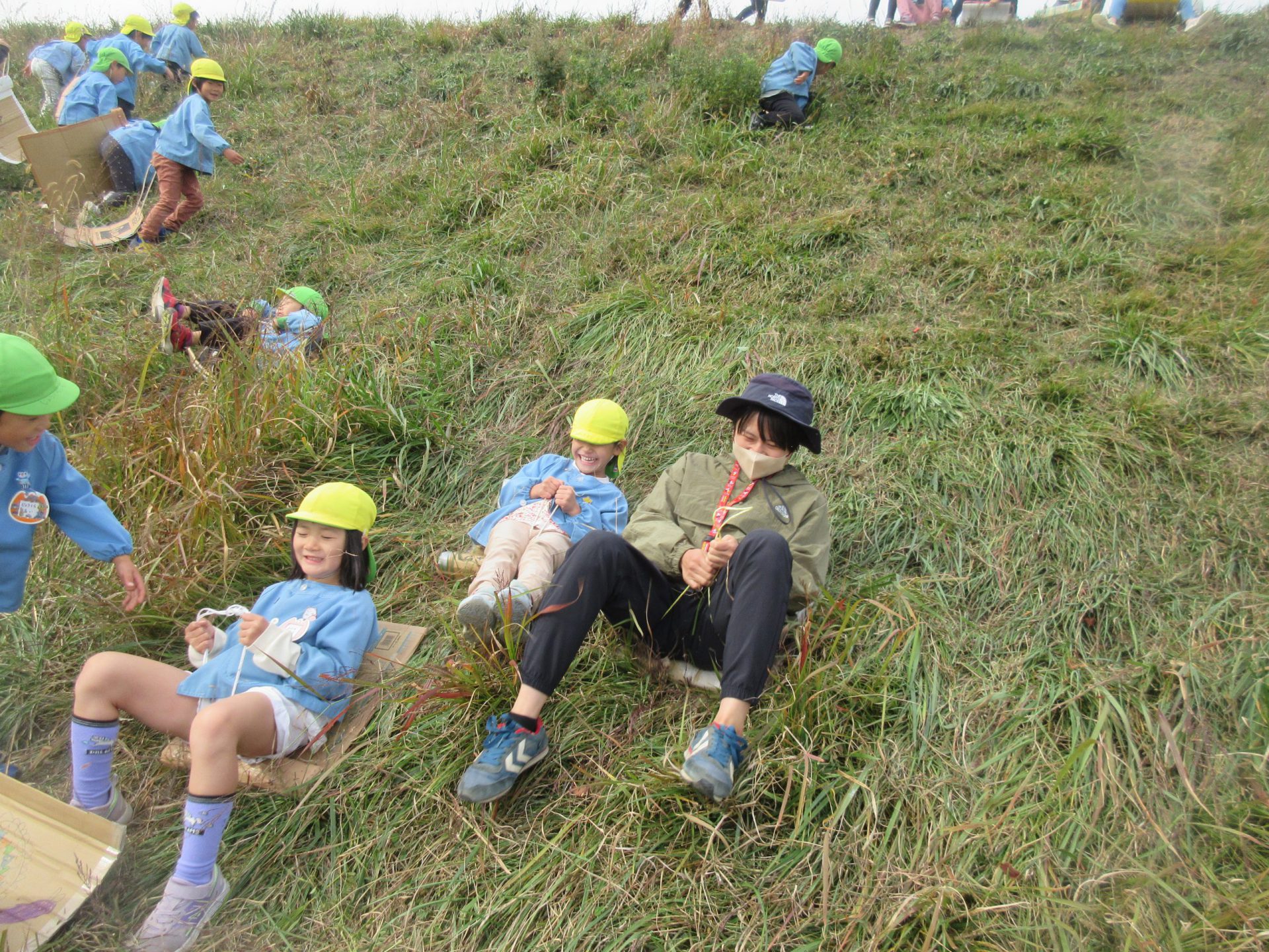 気の優しいS君は思わず自分から顔をだしました。 「すご~い」一生懸命探していた子ども達からの歓声が! よく考えたね!庭でお家の方に作っていただいた🍙と共に美味しいさつま汁をたくさん食べました。普段はコンニャクを食べない子も 自分のちぎったコンニャクを探しながらよく食べたそうです。