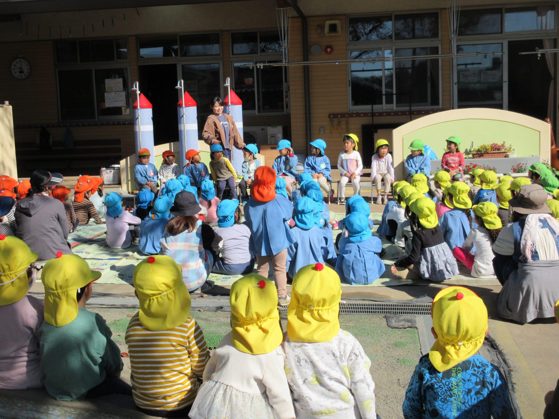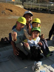 すっかり仲良しです。 お別れの際「3月に木のメダルを用意するから、元気で保育園で過ごしてくださいね」と話していただきました。毎年年長児が老松場の方の手作りの木のメダルを頂きます。子ども達が誇らしい気持ちになるふれあいです。