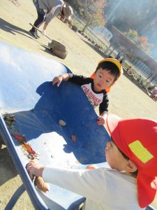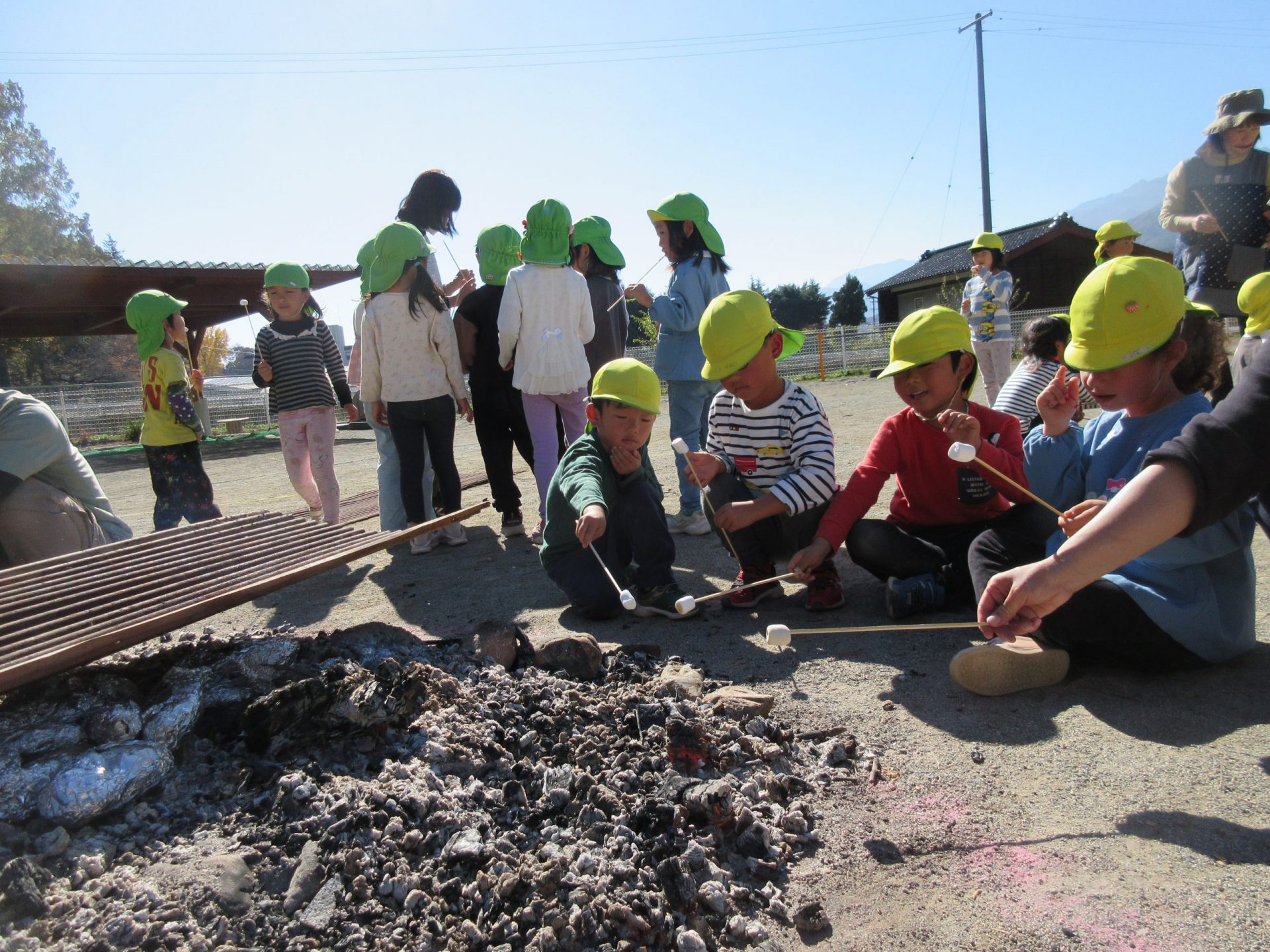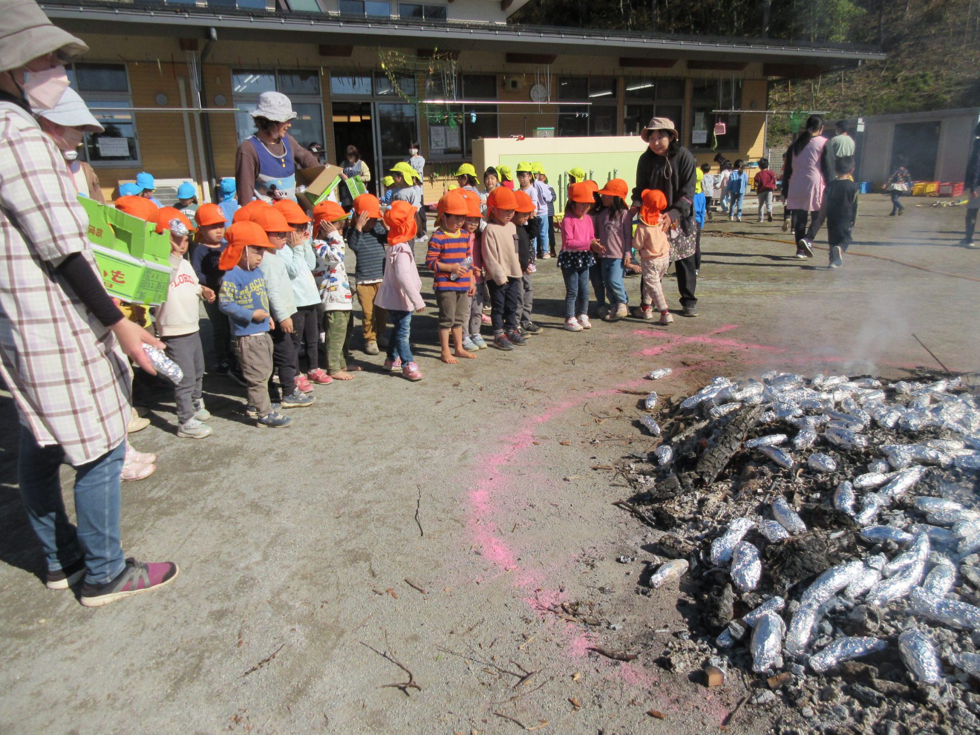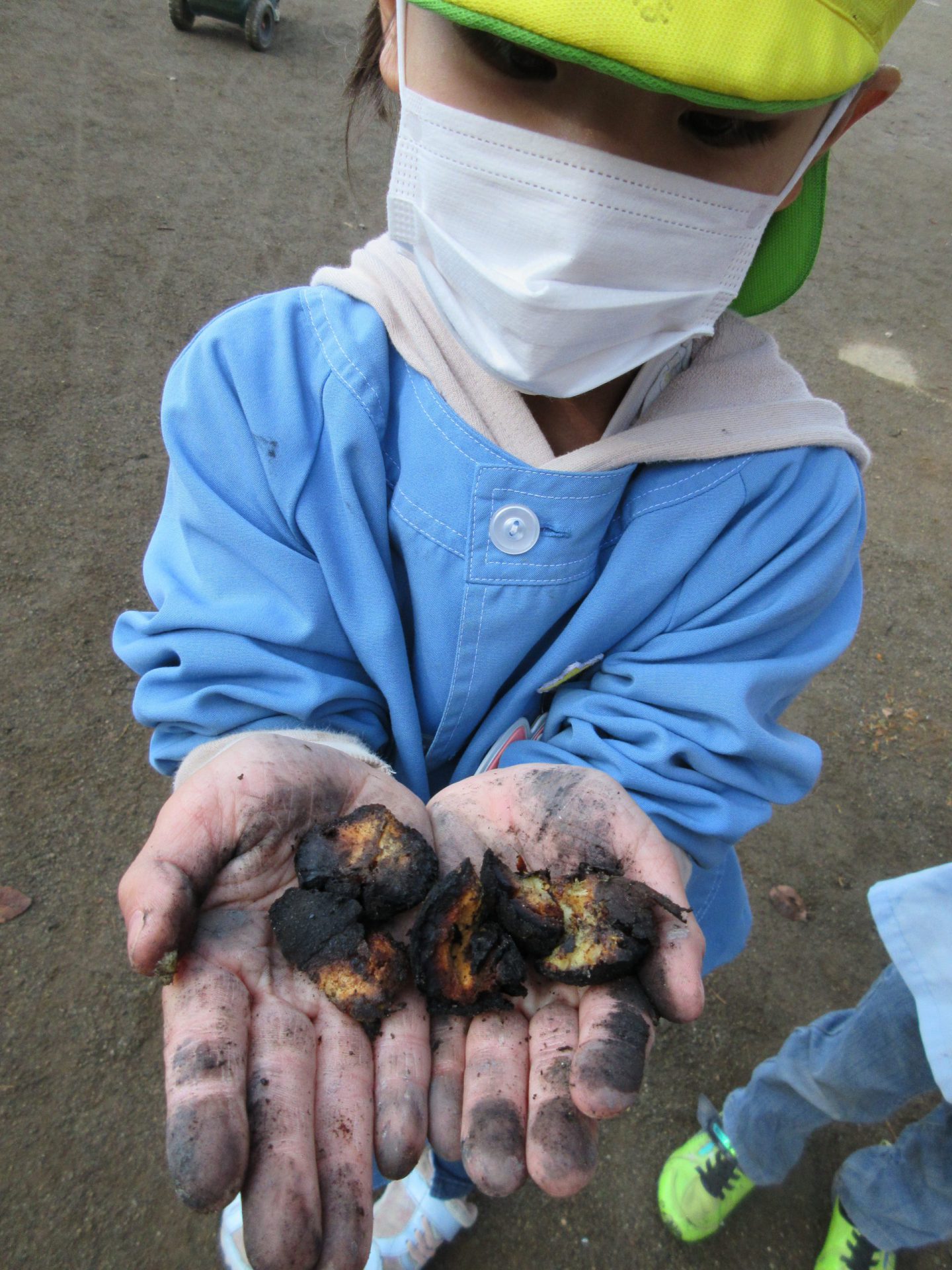 火が段々小さくなって「おき」ができました。じっと見ていた年少のS君。「あ~あ。火がちっちゃくなっちゃった。」と言いながら、その後もずっと見ていました。「そっか。焦げちゃうもんね。」と一人静かに思いを口にしていました。すごい気づきです。