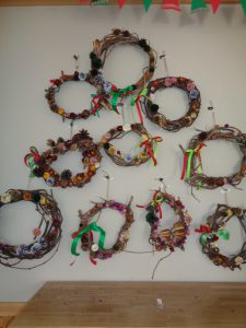 出来上がった作品は廊下に飾りクリスマスを楽しみました。🎄