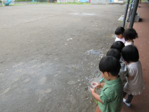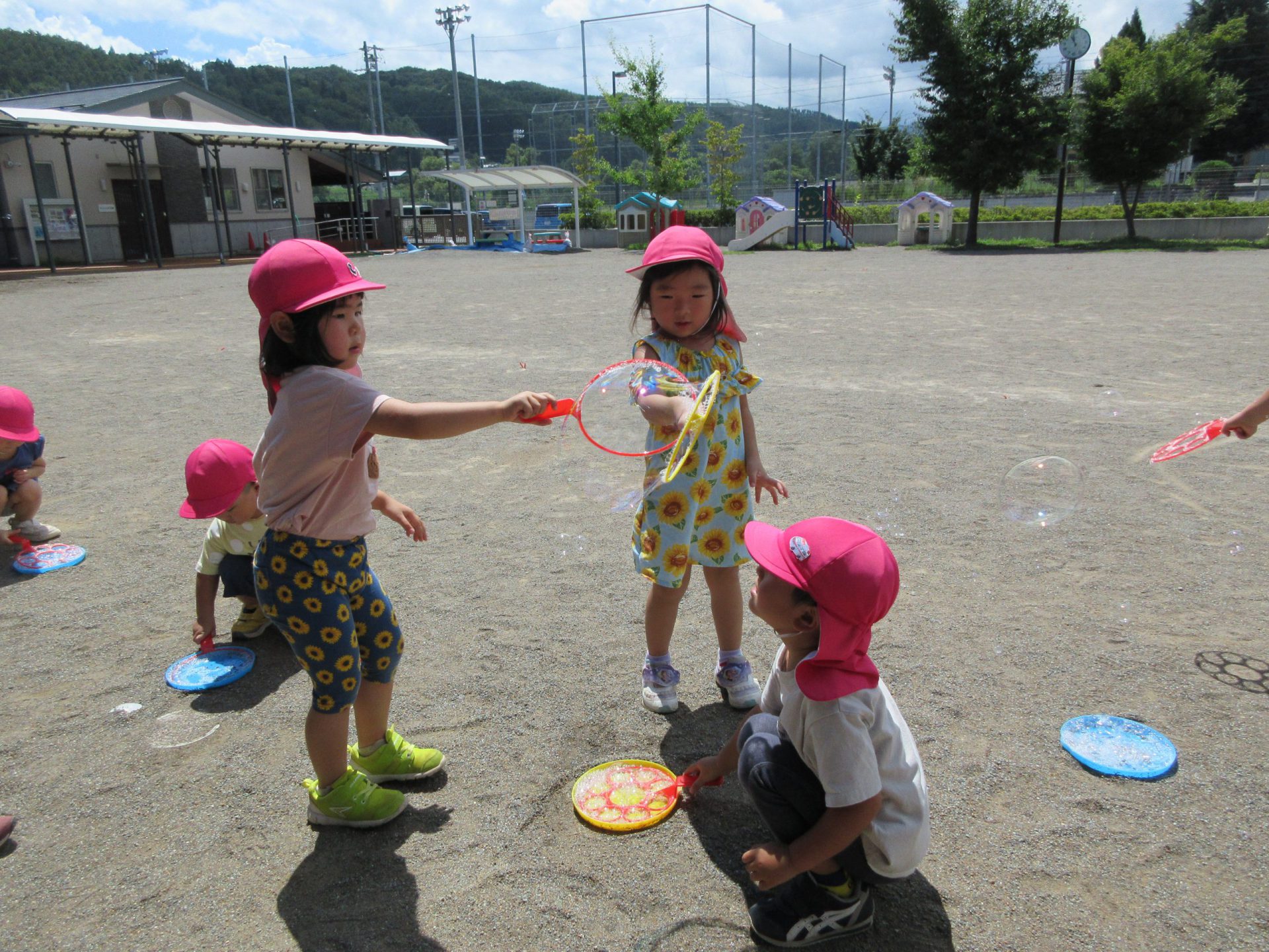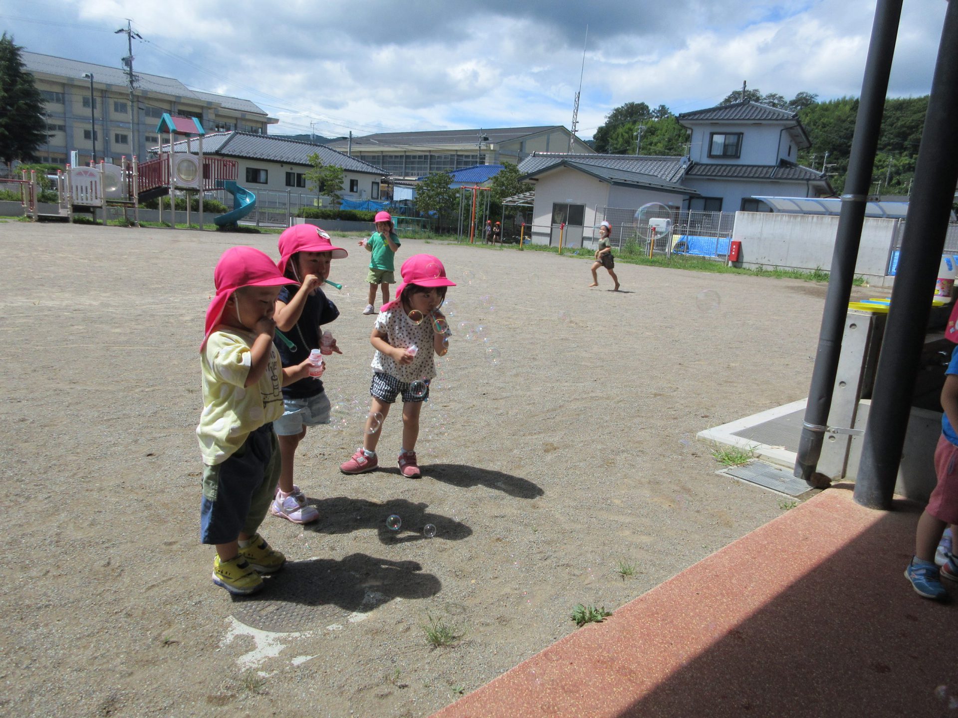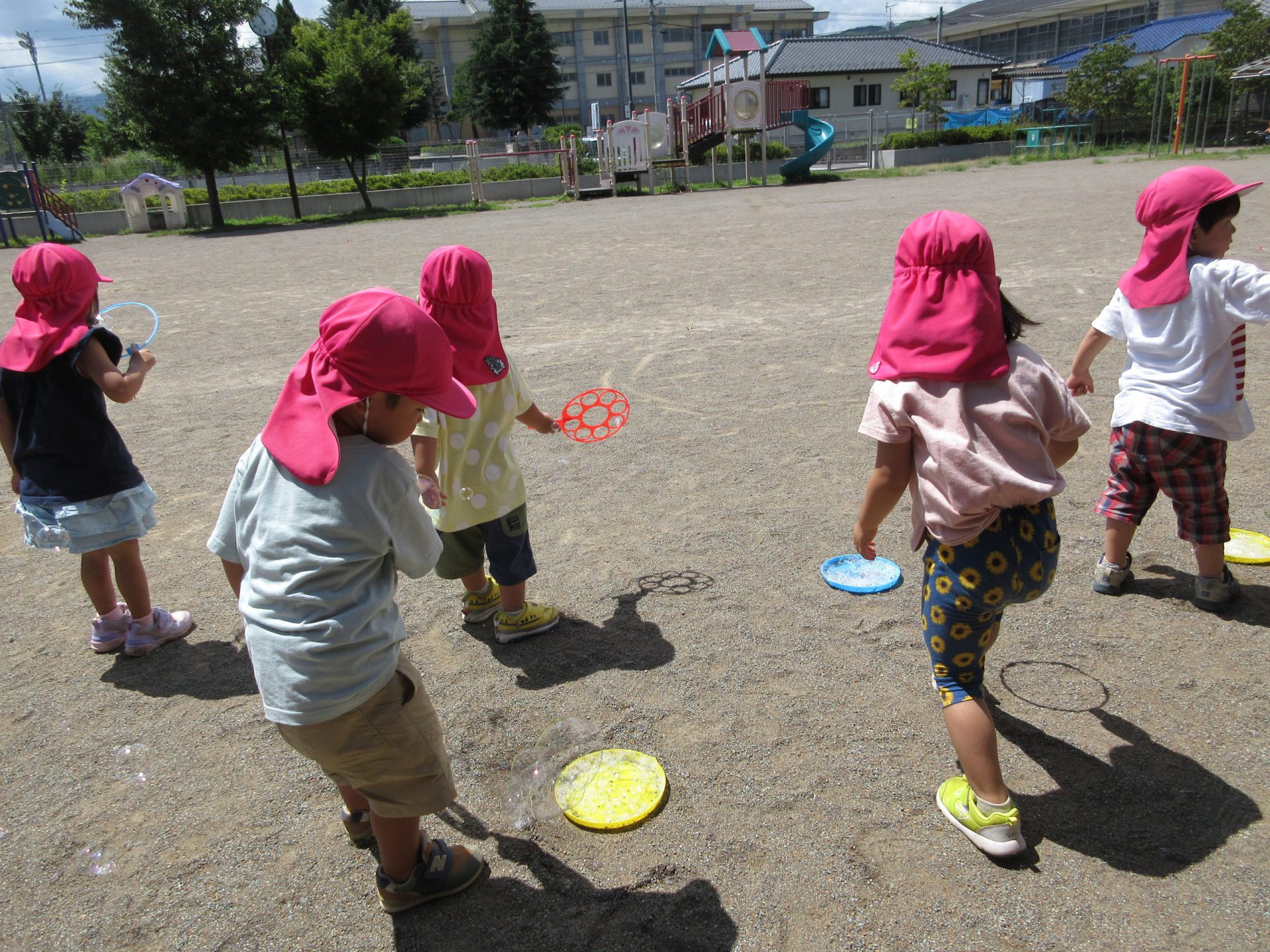 8月に年少さんが夢中になっていた遊びはシャボン玉です!