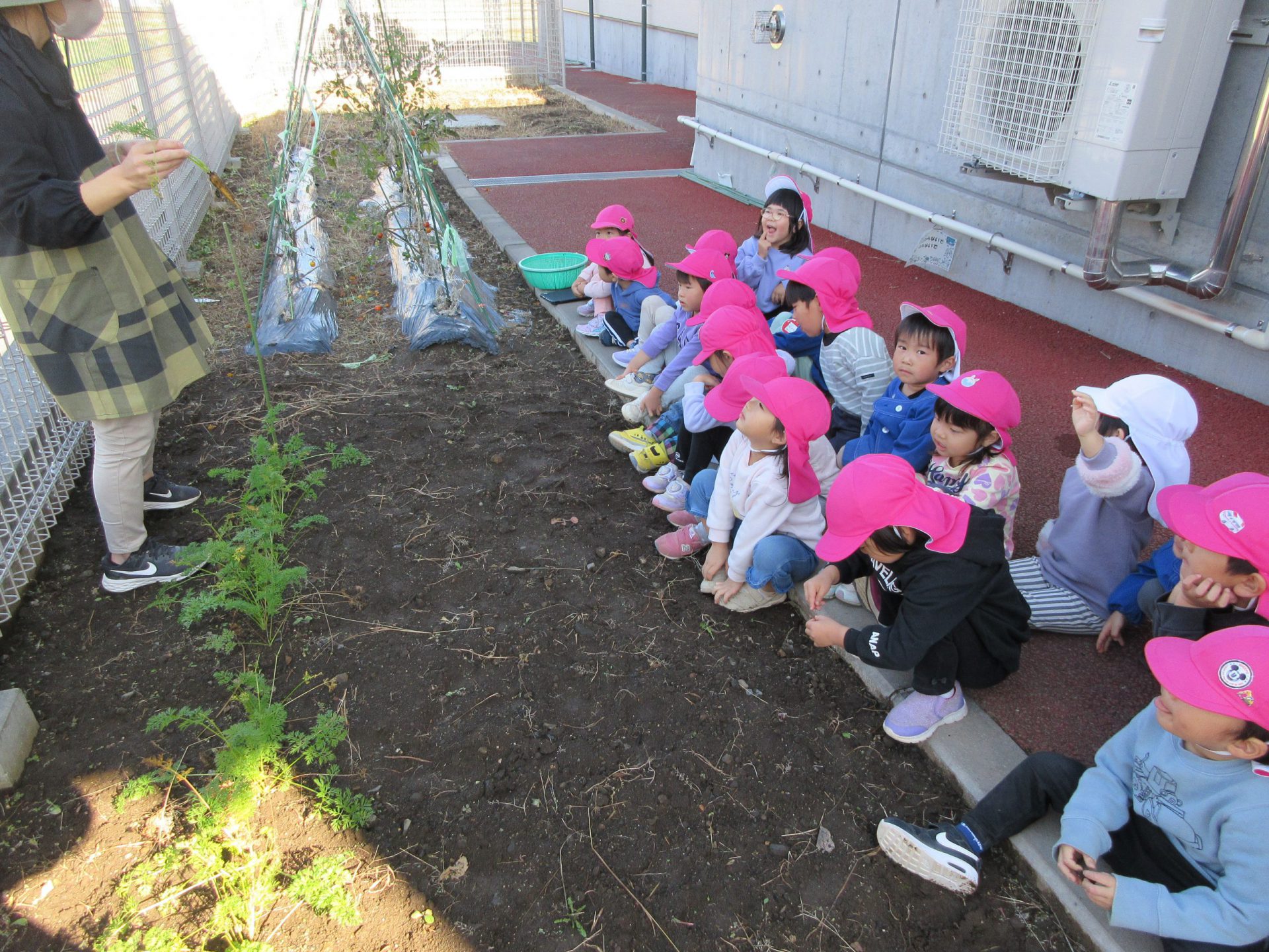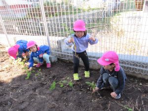 夏にはトマトやキュウリなどの野菜を収穫した子どもたち。