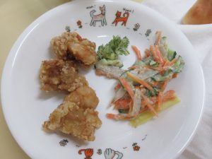 その日のうちに調理員が人参の葉の天ぷらとかみかみサラダを作ってくれました!