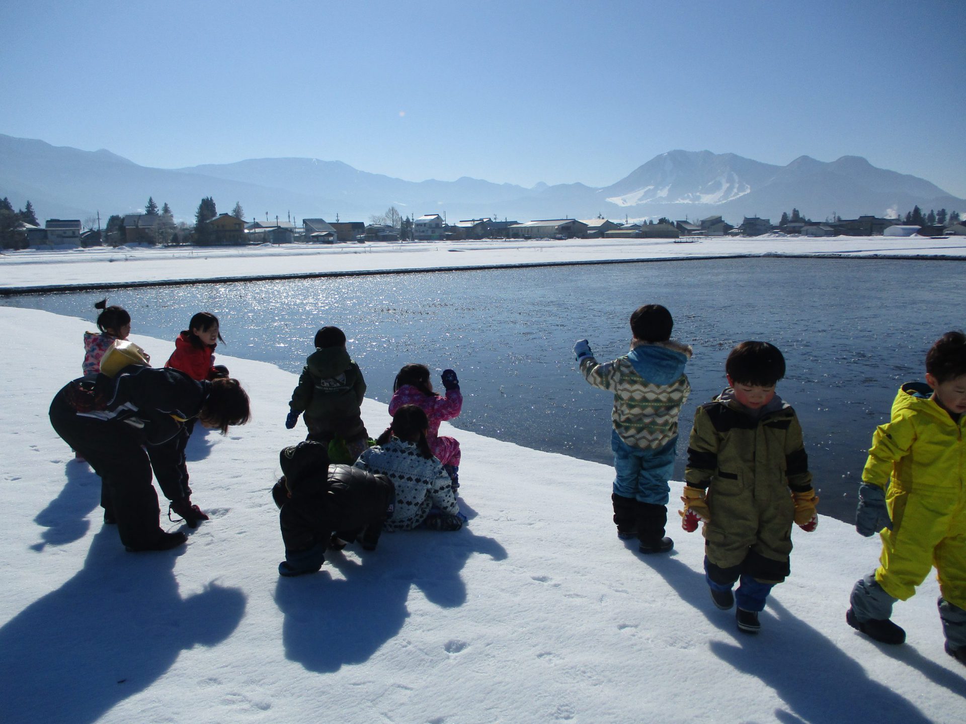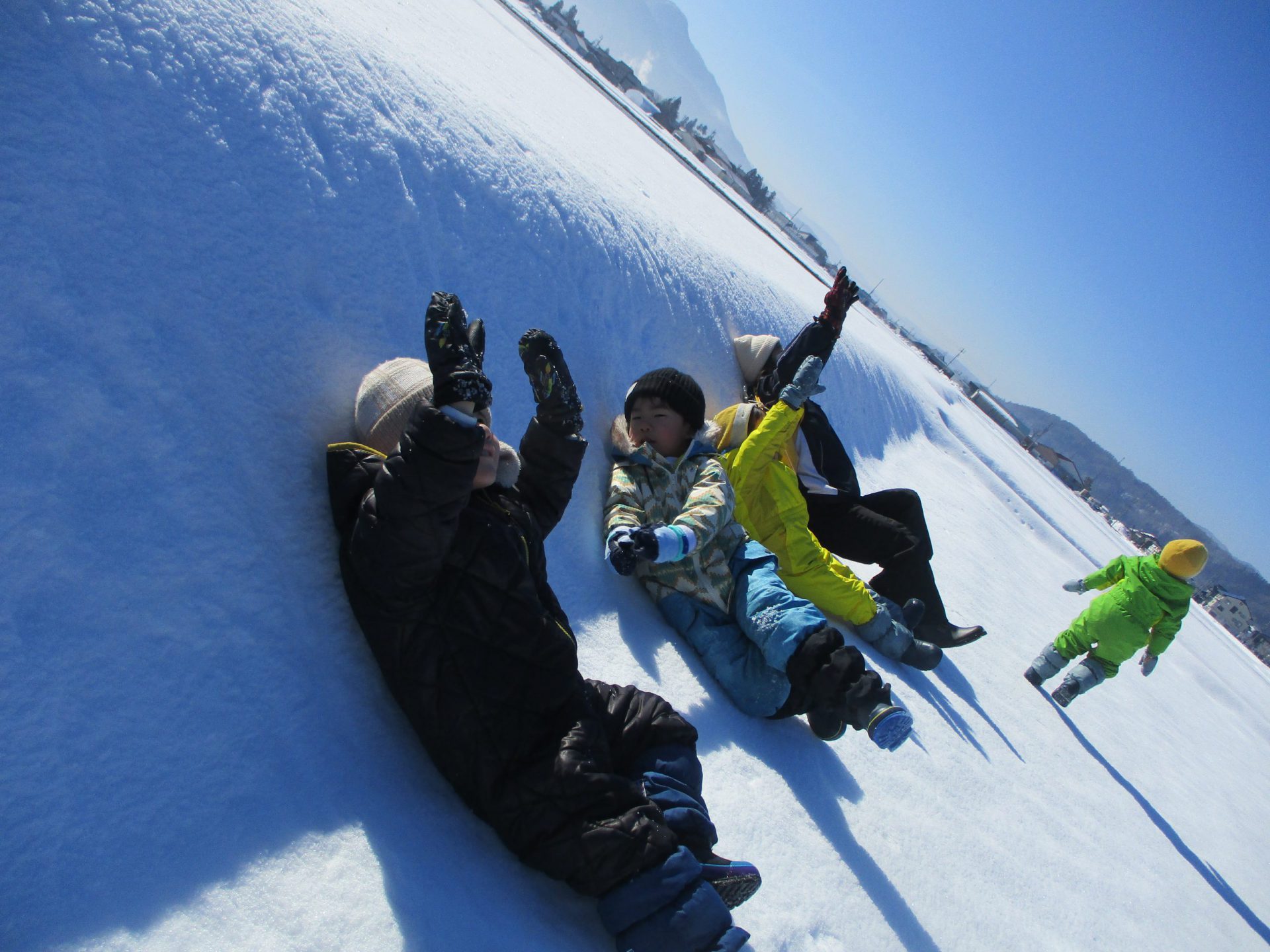 陽が強くなり、少しずつ雪が柔らかくなってきたのでそろそろ保育園に戻る時間。