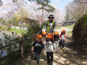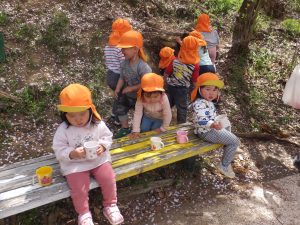 新5歳児さん。「わくわく探検隊」で日野地区のいずみの里まで行きました。