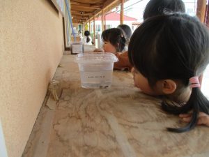 たくさん捕まえたケースを喜んで持って帰ってきました。手の中にそっと握って持って帰ってきた子もいましたよ。