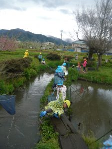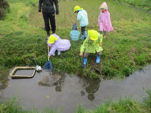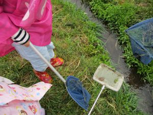 途中から日野保育園の年長さんも網を持ってきてくれて、一緒に遊ぶこともできました。