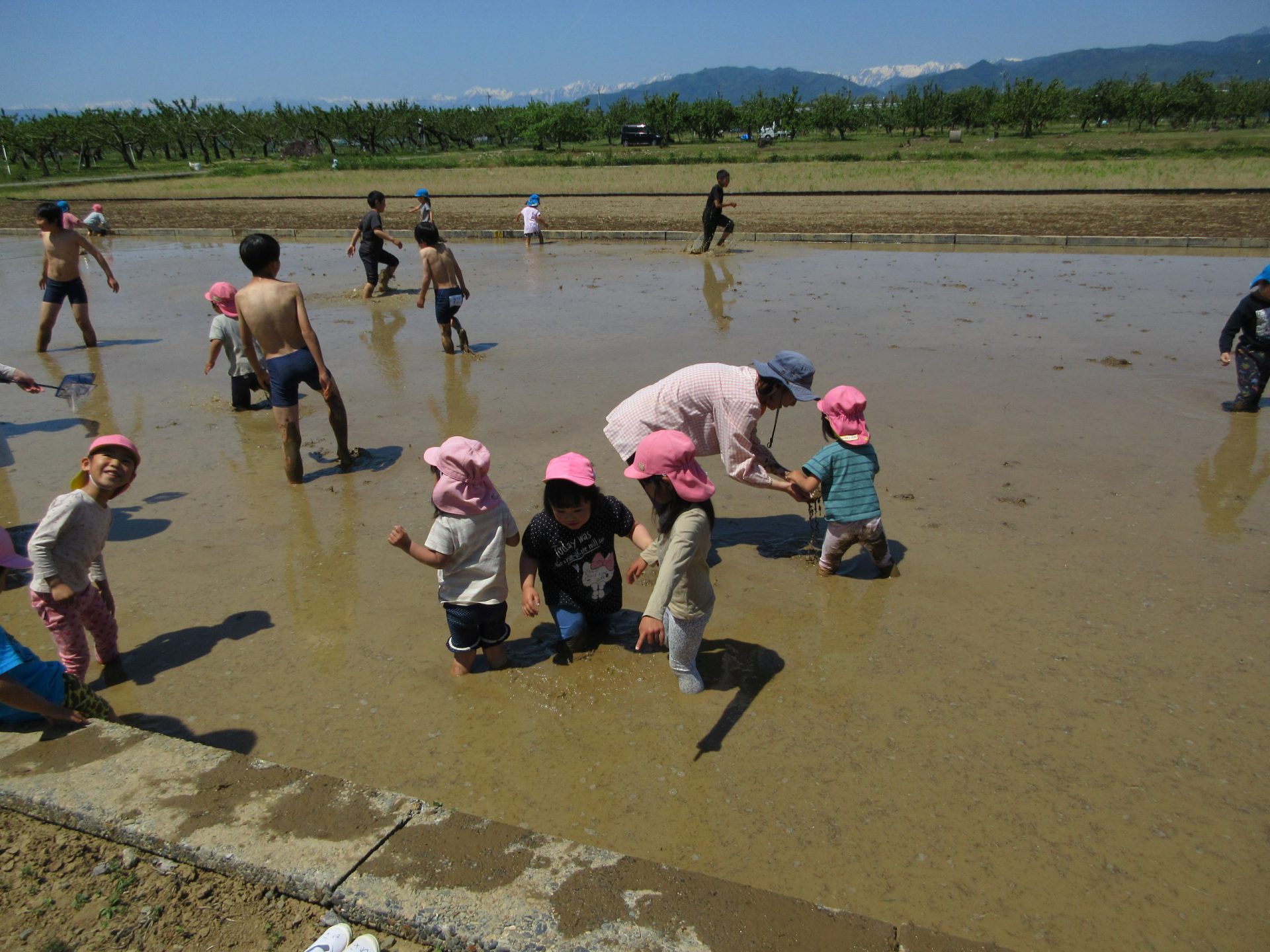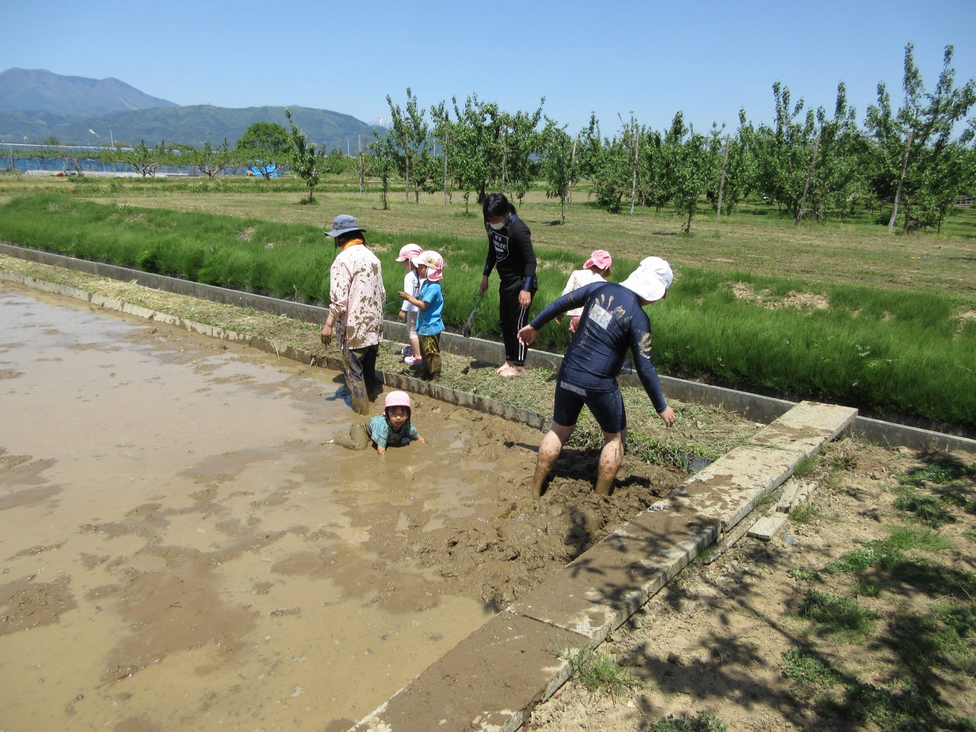 「田んぼの隅の泥んこの感触が違うよ。こっちにきてごらん」小学生が誘ってくれました。
