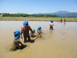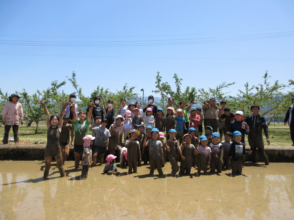 昨年までは、保育園の子どもたちだけで泥んこ遊びをさせていただいたのですが、今年は、5年生の皆さんも一緒に泥んこ遊びをすることになりました。