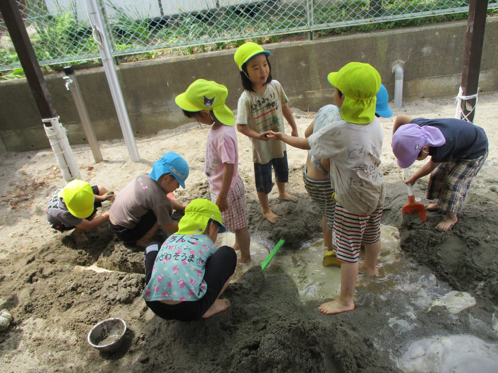 「この前はお水が溜まらなかったのになんで??」そんな疑問からこの日は、みんなで協力して掘ったようです。