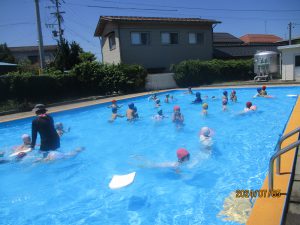 2年生との交流です。いつもより深いプールで、潜ったり泳いだり、歩いたり~♬